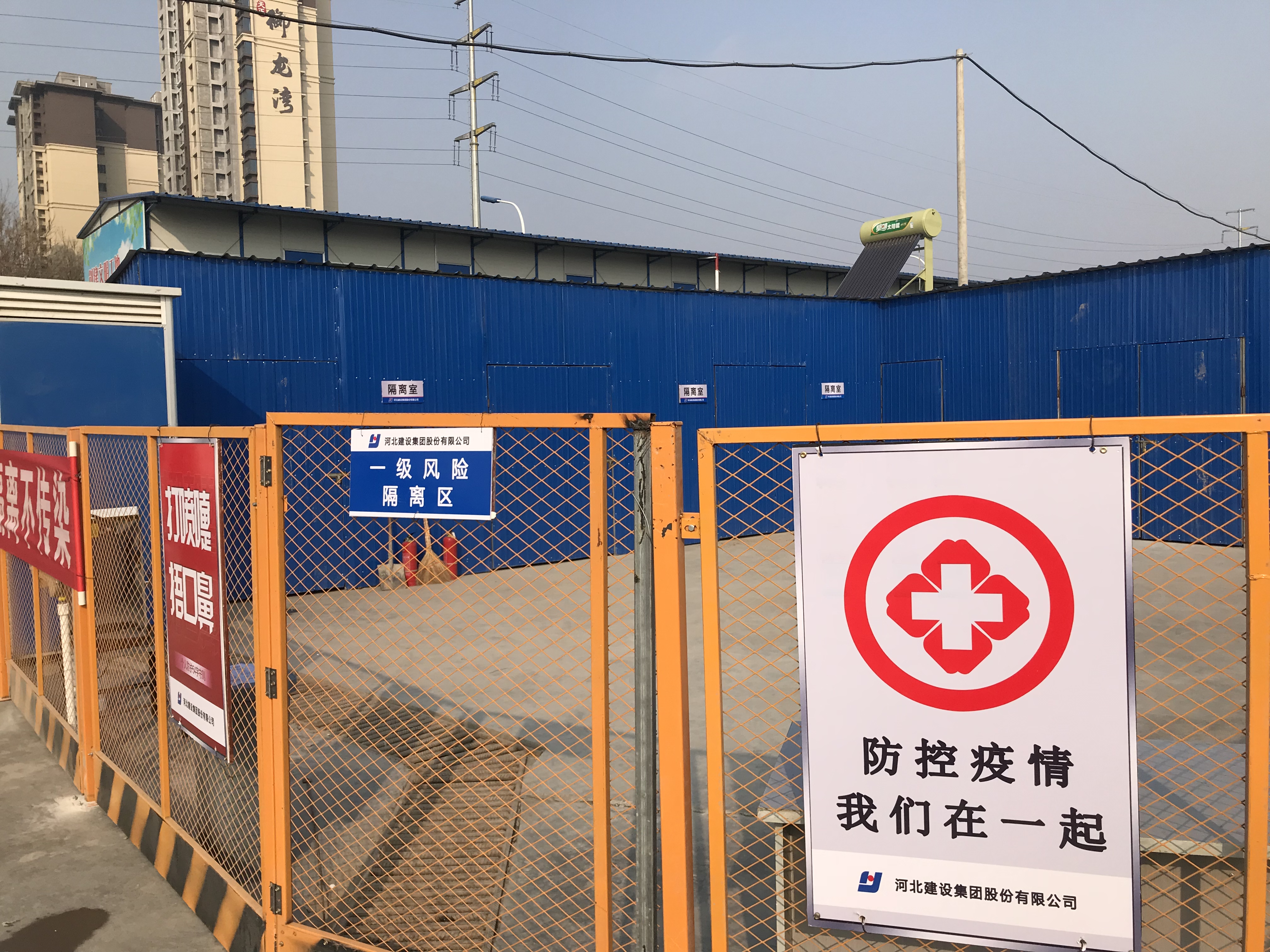 徐松介绍,雍锦半岛二期项目为了保证在安全、受控的情况下组织复工,项目部做了大量的准备工作。在做好现场的防疫及安全生产排查工作的同时,项目部积极做好现场深基坑、临电消防、大型机械、临边洞口的安全排查工作,保证施工处于安全状态。除此以外,项目部还设立了隔离区两处,隔离间十间。隔离区单独设置,配备厕所、热水器、洗手区等,保证正常有效使用。下一步他们将有计划组织人员返岗。根据施工需求,联系各班组人员,组织班组分批入场。“我们将首先安排衡水本地人员的返场,然后是人员少、人员固定性强的桩基单位进场,外地返衡人员按要求进行14天有效隔离后,组织主体班组分批进场。”