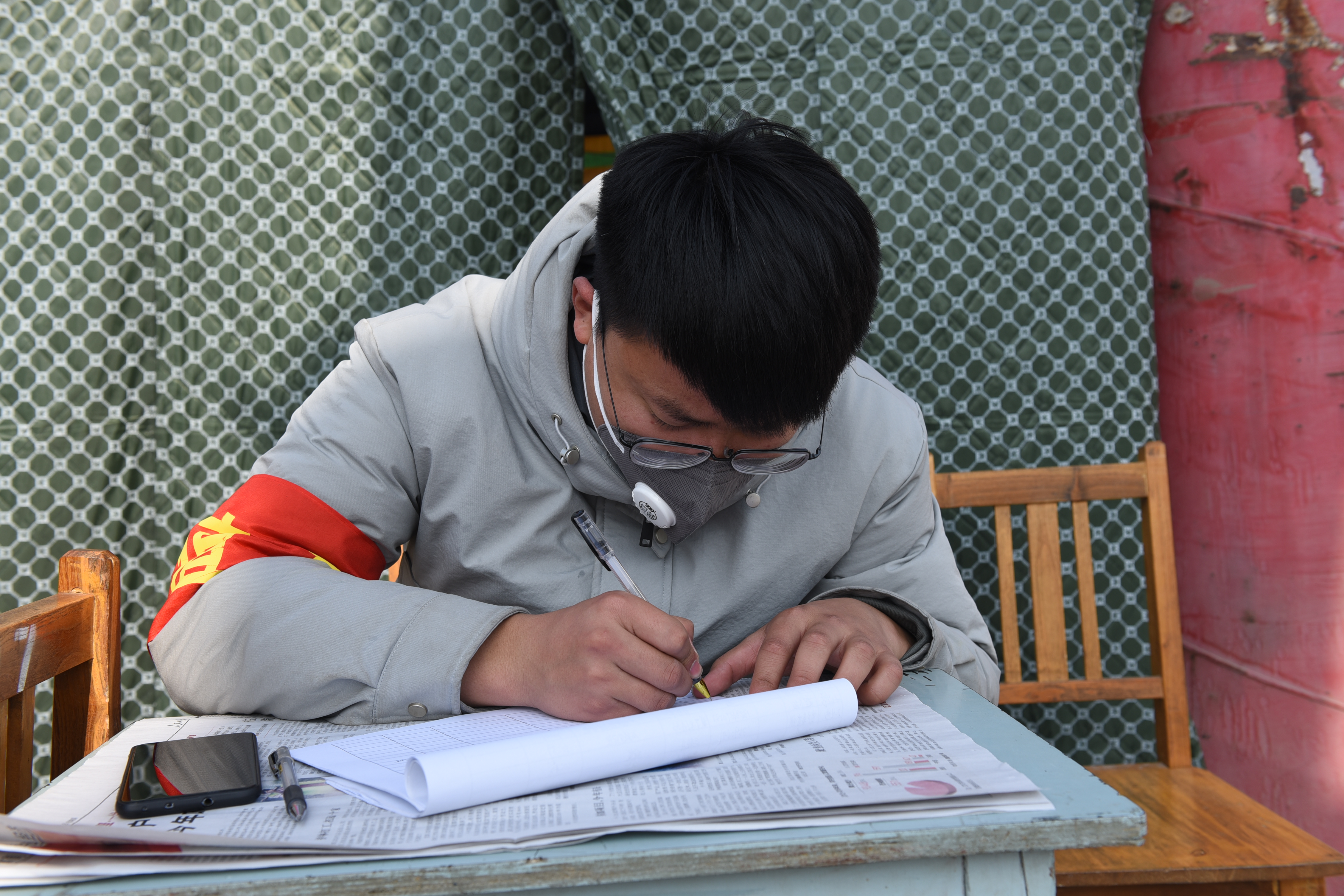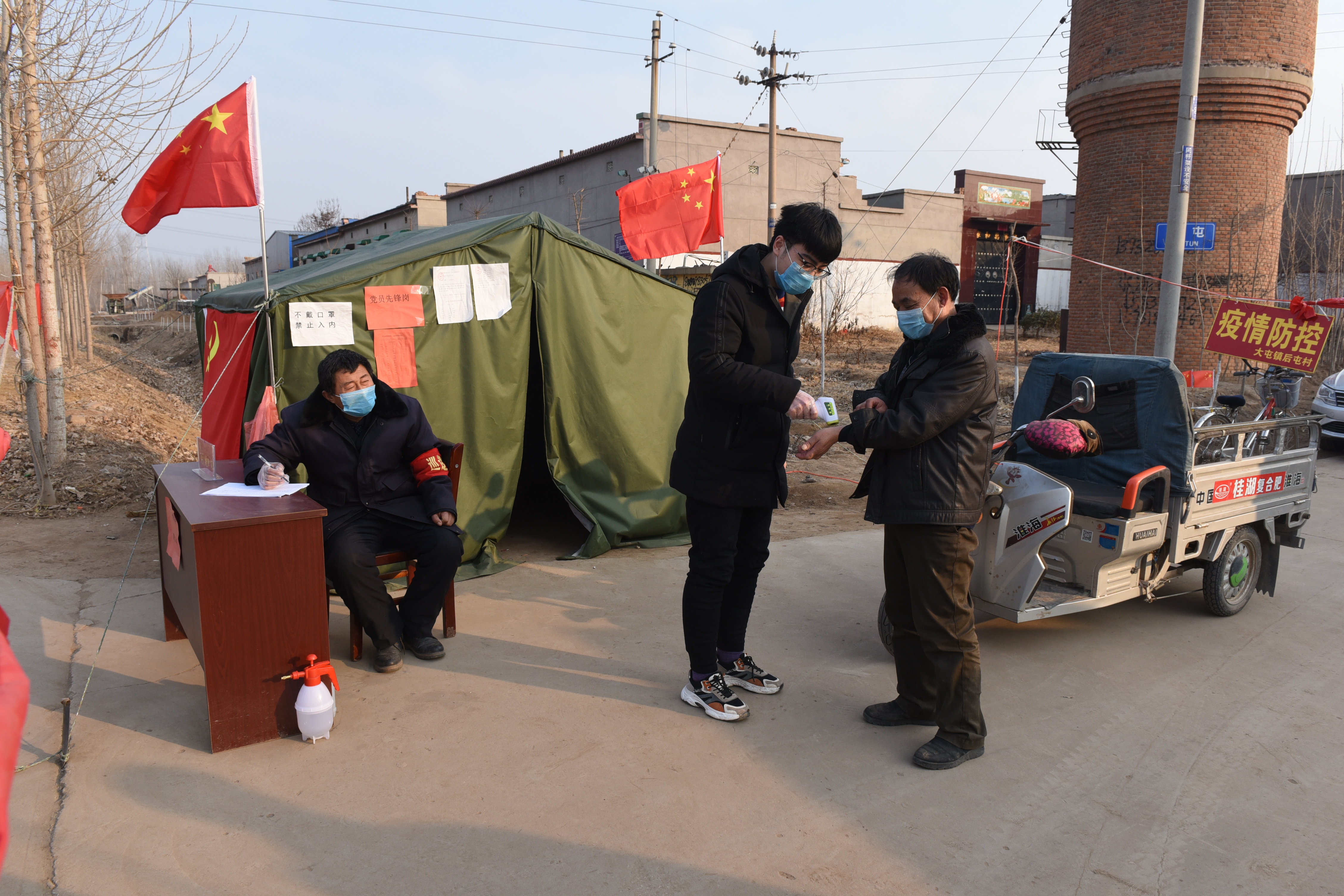 兵曹乡郭家庄村大学生志愿者在村庄疫情防控检查站值勤。