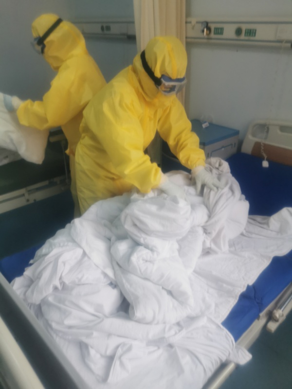 “既然是战友,就得互相照顾。”谢爱静说,有个武汉护士还在哺乳期,孩子才几个月大,“我们就照顾她上正常班,相对清闲些。大家都是主动把正常班调给她,让她少进病房。咱们的人病倒了,武汉护士也会主动顶上。”