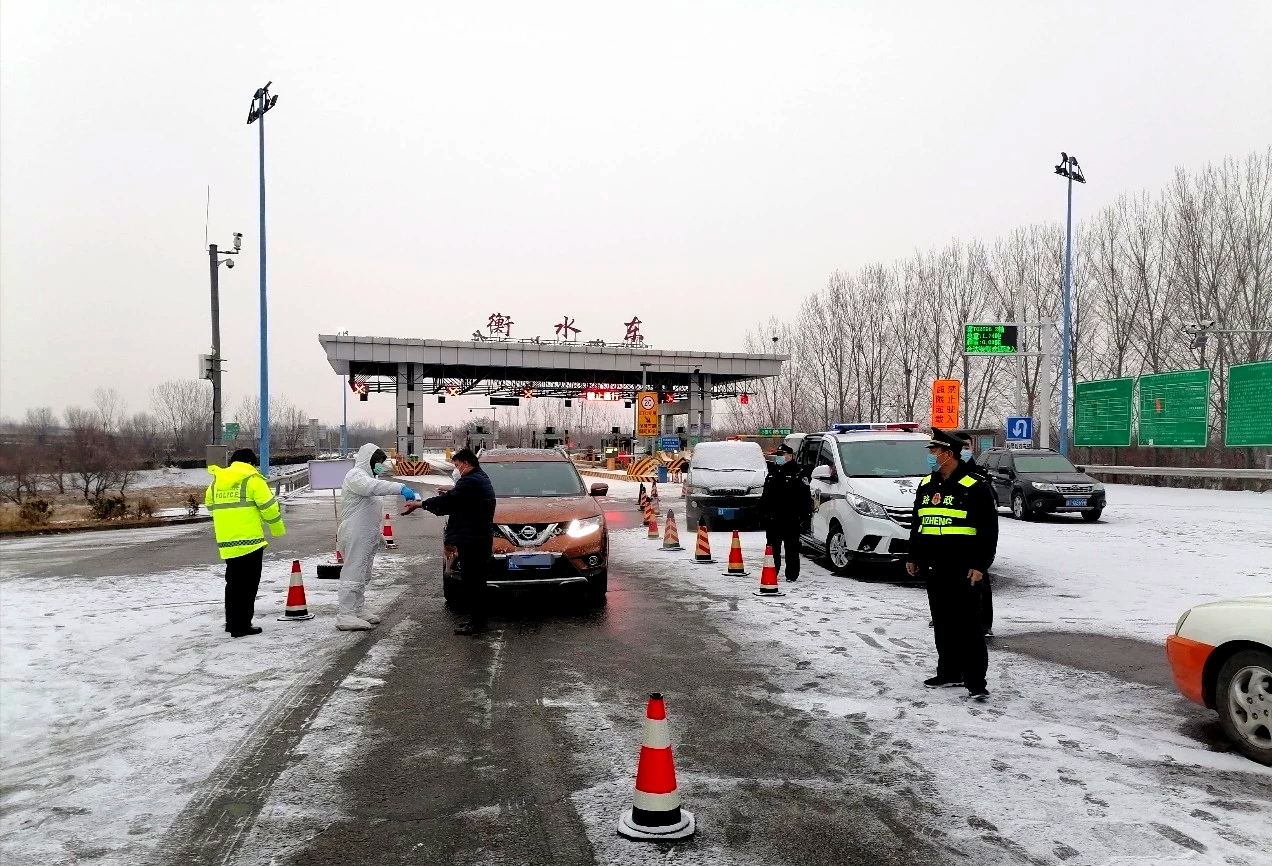 高速路口检查站作为城区疫情防控阻击战的第一道防线,桃城区交通检疫组在衡德高速衡水东和邢衡高速衡水西两个高速路口设置疫情防控检查站,交通、交警、民警、卫健医务人员联防联控、连续作战,他们实行三班倒工作制,全天24小时轮流值守,对进出车辆的所有车上人员进行不间断检查,测量体温、信息登记,力保疫情排查“不漏一车、不漏一人”。饿了他们就吃碗方便面,渴了喝口冰冷的矿泉水,困了蜷缩在车里眯会儿,夜晚在万家灯火尽熄的时候,他们依然在刺骨的寒风中核查来往车辆和人员。根据车流量高速路口随时增派工作人员,日排查返衡出衡人员2000余人次。