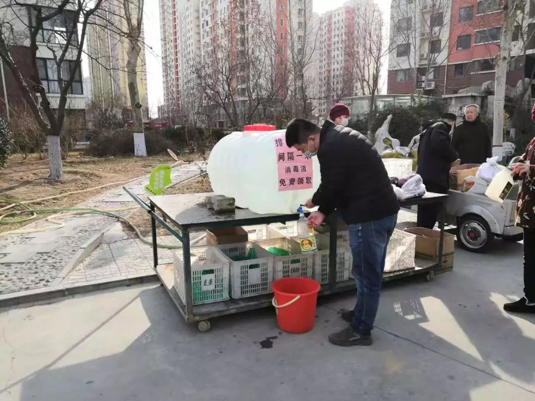 为小区居民提供免费消毒液。