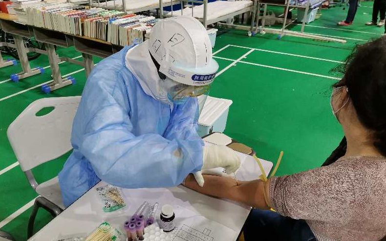 陈晶在地下舱为患者采血