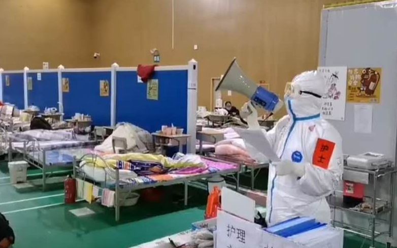 说到宣教,舱内其实是有“利器”的,那就是手持扩音喇叭,只不过有时候忙起来经常会忘了它的存在。我们嘱咐的内容要是患者们听的清楚,一问一答的情况就少了许多,这样既保证了舱内各项工作的有序进行,又为工作流程节约出了时间。之所以要节约时间,是因为方舱医院的工作量其实是很大的。一个看起来并不费力的环节,由于是穿着防护服操作,本身就比平时的操作要多消耗一些时间,再加上患者人数多,所以整个工作流程下来,有些班次的工作会比原定计划有延迟。延迟的部分工作量只能由下一个班次来完成,这样循环下去,工作效率就会打折扣。考虑到这些因素,我们总是尽可能加快工作节奏,节省出间,不只是为了完成当班任务,也更是为了下一个班次的工作做起来更顺利。