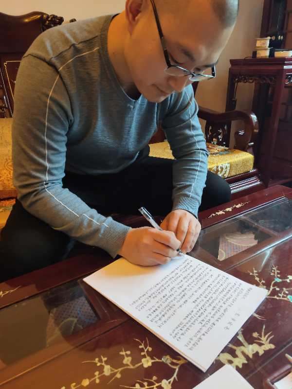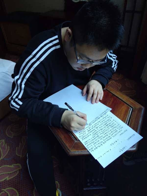 田鹏写得很认真,居然不知道我在偷拍