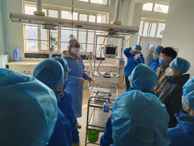 下午两点,实地培训,并对武汉大学中南医院的环境做初步了解。这次培训内容更加接近实战,包括院感防控、隔离病房穿脱防护衣、呼吸机使用、高流量湿化仪器使用、咽拭子标本采集、动脉血气采集等。“不能给衡水人丢脸!”我暗地里给自己打气,把每一项都在心里反复模拟训练,不懂就问。我觉得战前多学点,进入病区就能更顺手。