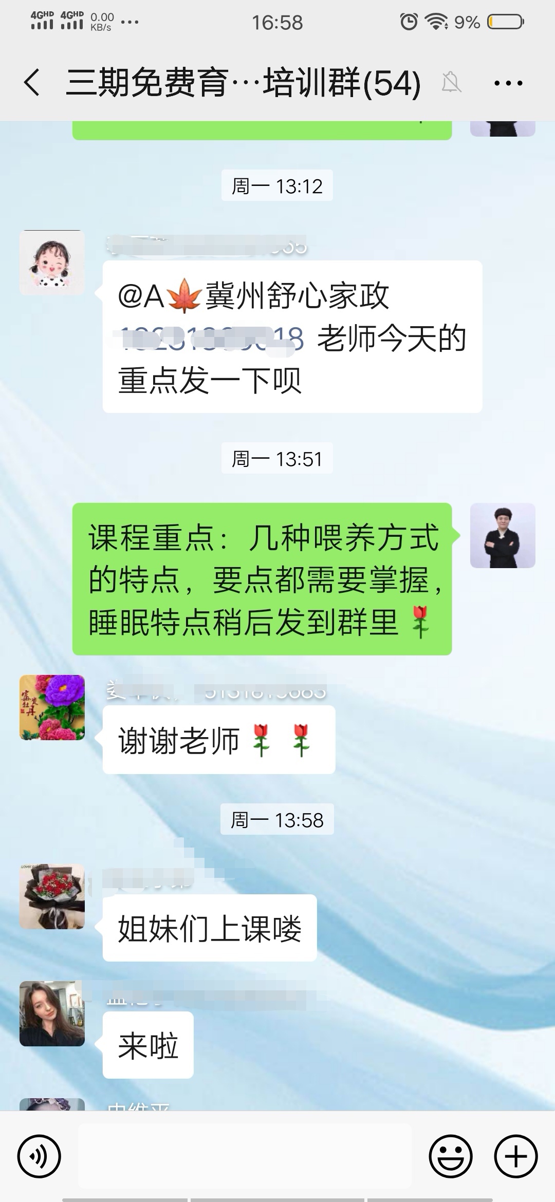 “姐妹们,上课了!”2月27日,由衡水市冀州区妇联、舒心家政职业培训学校联合开办的免费育婴网络培训班又一次按时开课,冀州区的60多名妇女通过微信群在线免费学习家政服务知识。