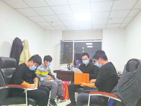 从早上8时忙到晚上10时,早已成了他们的工作常态。“现在干什么事都是用跑的,因为时间真的太紧了!”作为固体科负责人的刘奇,是科室唯一的共产党员,他一直带头冲锋在前,顾不得照看家中年幼的女儿,每天早来晚走,认真落实每一项工作。他的这种忘我工作的精神,感染着科室的其他三位同志。