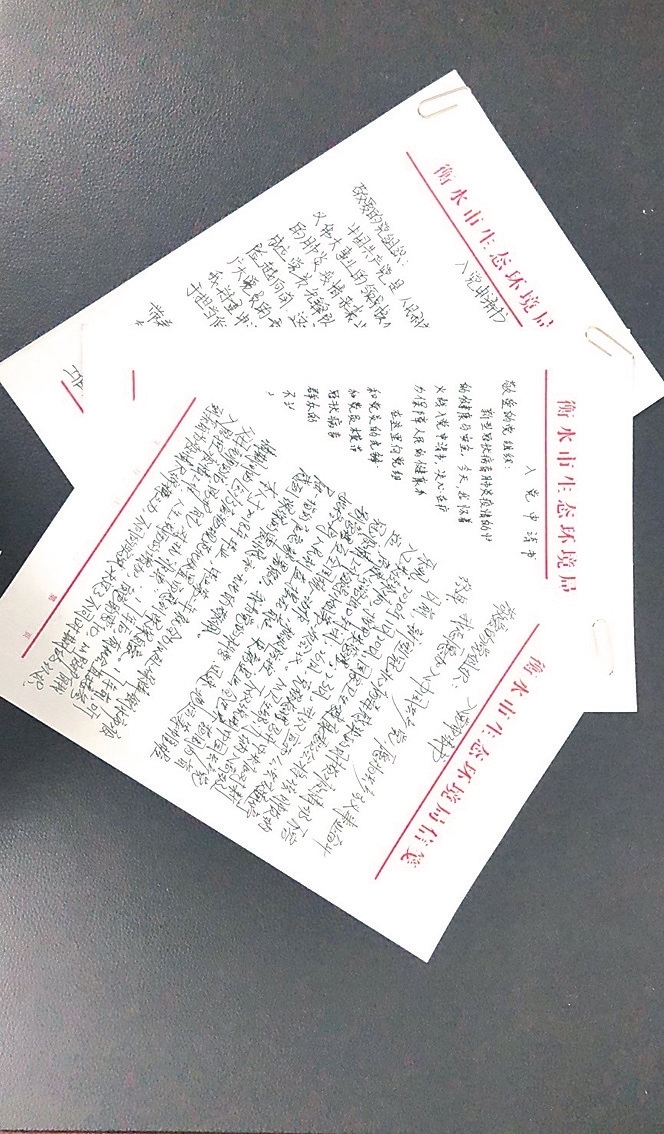 这是一份入党申请书,更是一份战“疫”书,他们要将这次疫情看作是自己入党的试金石,兑现自己在申请书上写下的铮铮誓言,用实际行动践行生态环保铁军的使命!