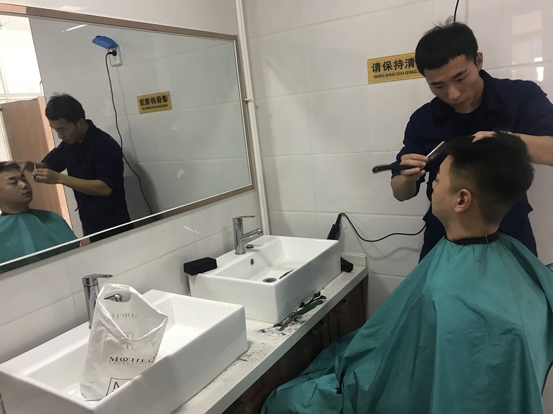 为同事理发的乔汝庆