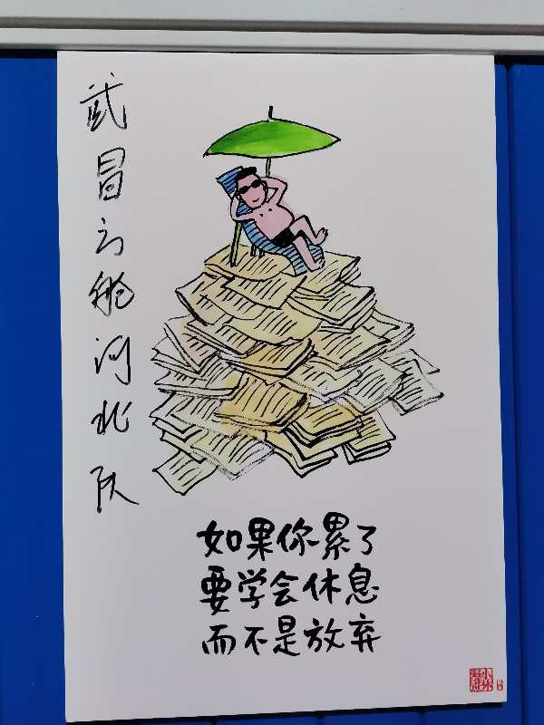 每一张漫画都像我们的医疗队员,他们每天承担着繁重的医治工作,一抬头看到这些漫画,往往会心一笑。“每次的人生不如意,都是上天给的长假,这时的你,应该好好享受假期”“超人为啥爱穿紧身衣?因为救人要紧”看着一幅幅浅显易懂但富有哲理的作品,解压效果相当明显,偶尔看到有的医护人员调皮地模仿漫画里的人物形象,有的人笑着笑着就哭了……“每每心情不好时,看看这些漫画都会被治愈了,希望疫情早日散去,我们都脱掉口罩展露笑容”,我们不少医护人员都觉得,这些漫画画出了自己,忙碌中看一眼这些漫画,就能够感受到这个春天已经开始变得温暖了。