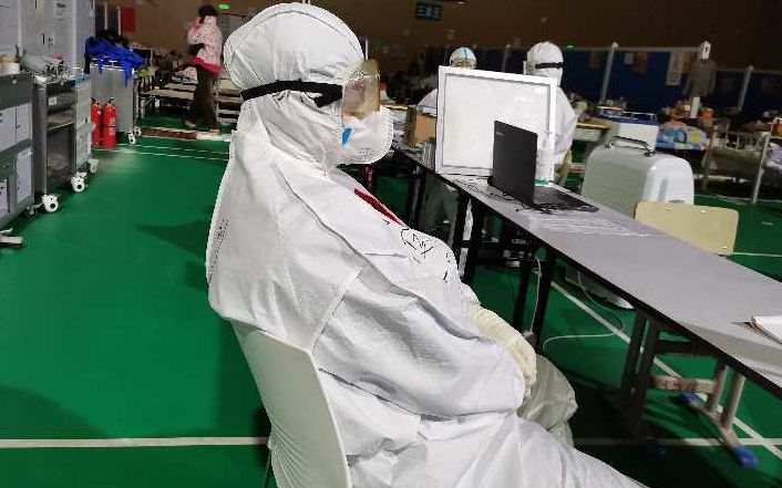 尽管每天的工作量没怎么减少,但全国疫情的捷报让和部分地区复工复产的消息让我们的队员们很受振奋,舱里的患者们对待战胜疫情的心态也更加平稳。大家憧憬着出舱后生活的同时,在舱里跟医护之间的配合也慢慢变得顺利、流畅。舱里静下来的时候,很多患者都安静的做自己的事情,他们脸上的笑容多了,紧皱眉头的形态也舒展了,互相拉家常的虽然自动隔着一定距离,但并不影响大家情感上的交融。而这些景象,在我们最初抵达方舱医院时是没有的。因为方舱里住的都是轻症患者,病人之间的症状基本都一样,大家刚凑到一起的时候,基本上都是互相设防,谁跟谁也不交流,大部分时间大家都低着头,戴着口罩静静的坐在床边。
