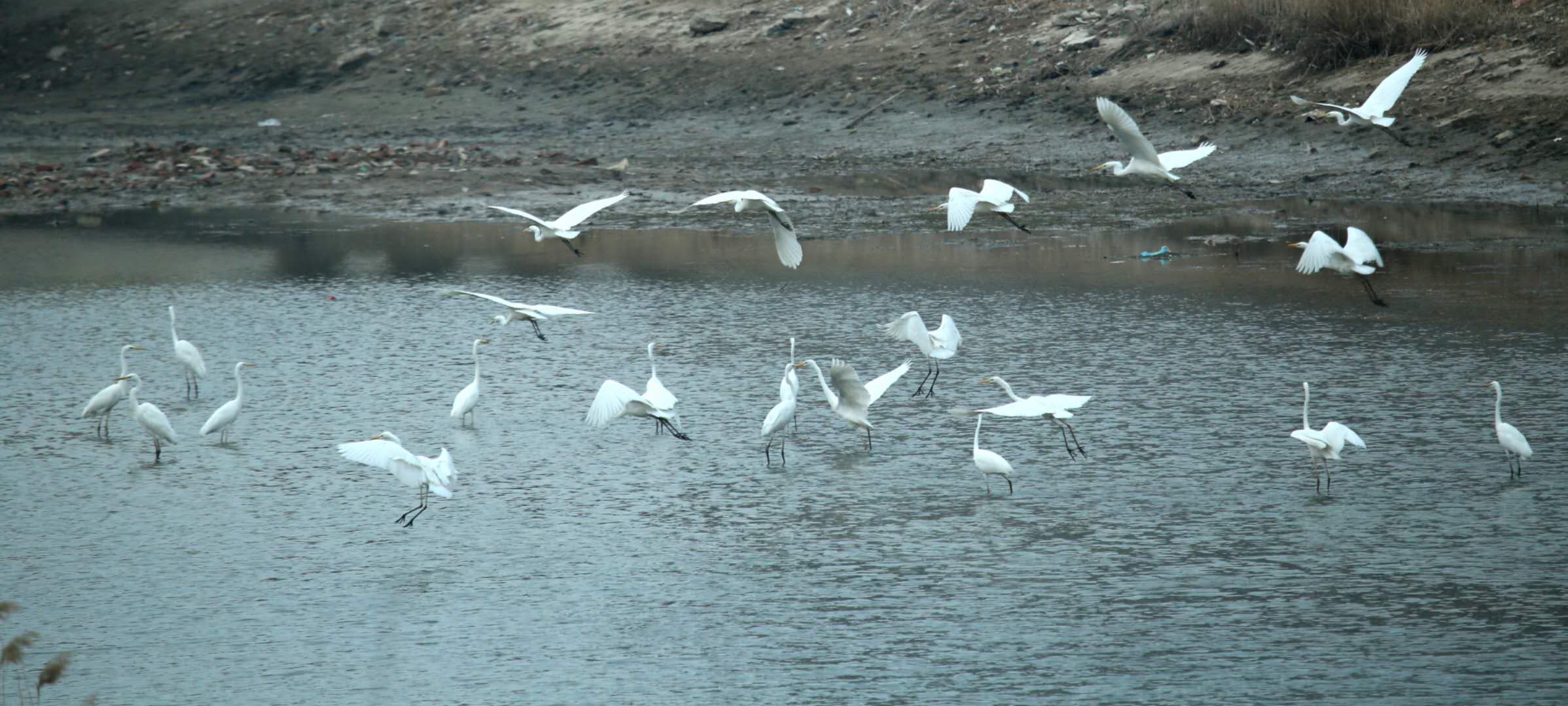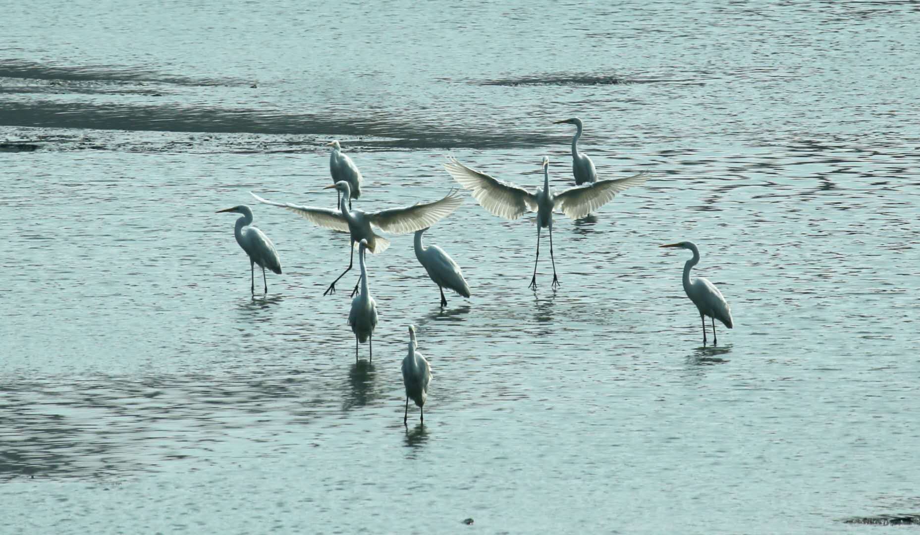 记者从滏阳河管理处了解到,眼下正值滏阳河黑臭水体治理即衡水市滏阳河(干马桥—大西头闸段)水环境生态治理阶段,随着河道清淤及底泥处理工作的推进,从春节前夕就有白鹭陆陆续续地来到滏阳河市区段北段捕食,最近,永兴桥两侧又出现了约50只左右的白鹭。
