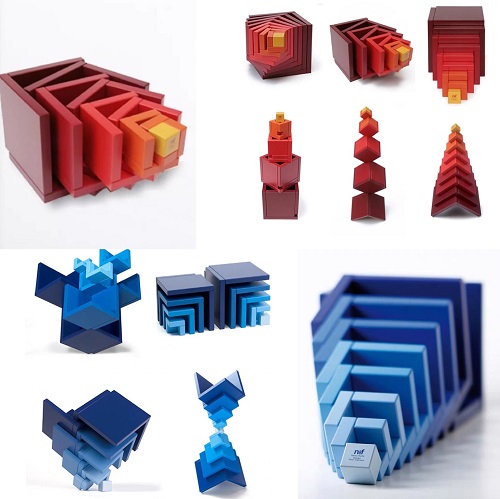 创立于1954年的Naef,曾代表瑞士登陆上海世博会瑞士馆。这个神秘的“方块迷阵”以立方体分割为主题,8个三面体、一个小立方、5种色彩渐变,可以从最简单的堆叠,到后面做出自己创造的个性图案。小小的积木,探索的是个体与整体的关系,融入了几何学、美术,让教育与游戏合二为一。