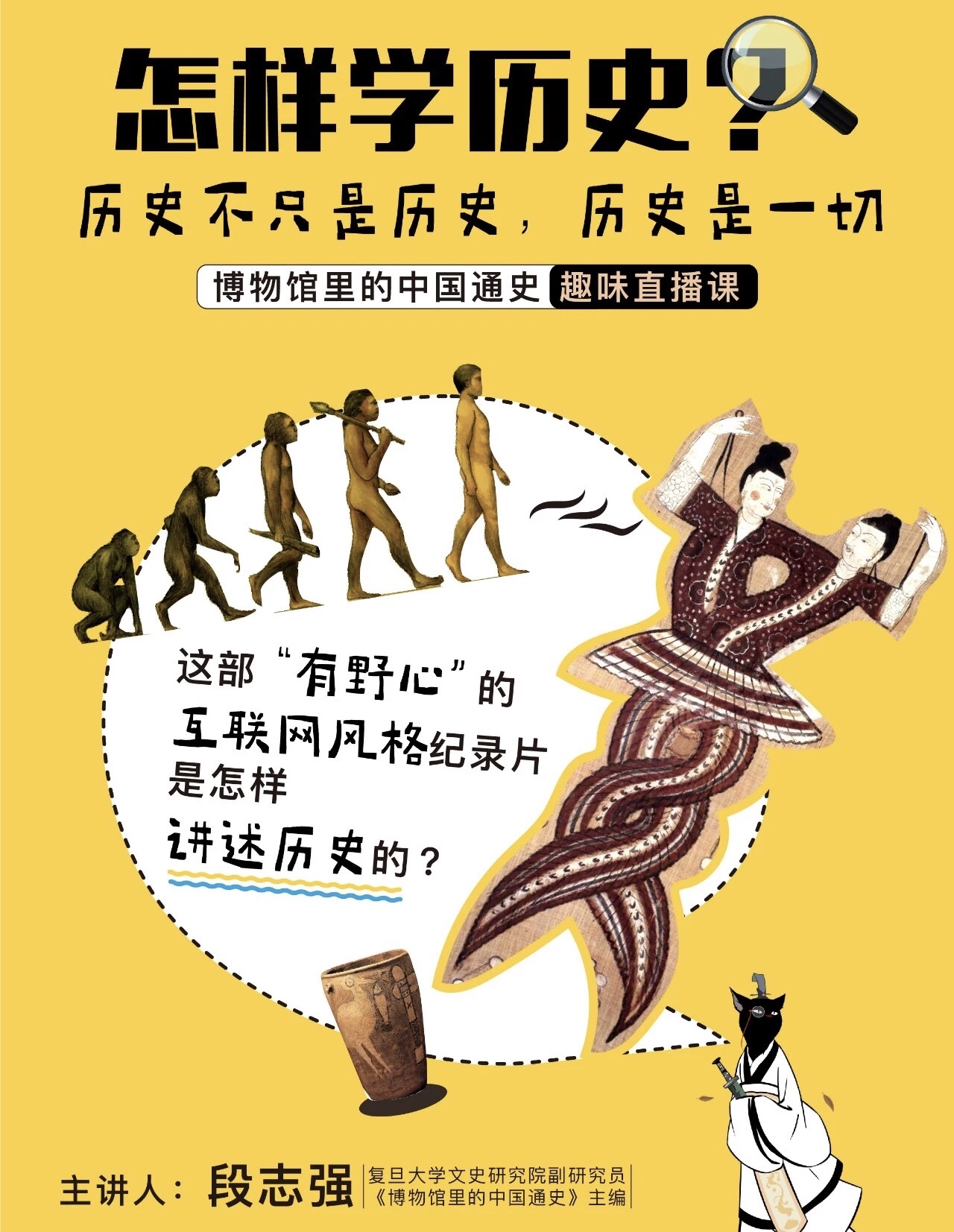 新冠肺炎疫情期间,假日博物馆推出一系列公益直播课,3月6日和3月7日(周五、周六)复旦大学历史系学者段志强将以风趣幽默的语言,带来两堂主题为“怎样学历史”的直播课程,让历史知识变“立体”。