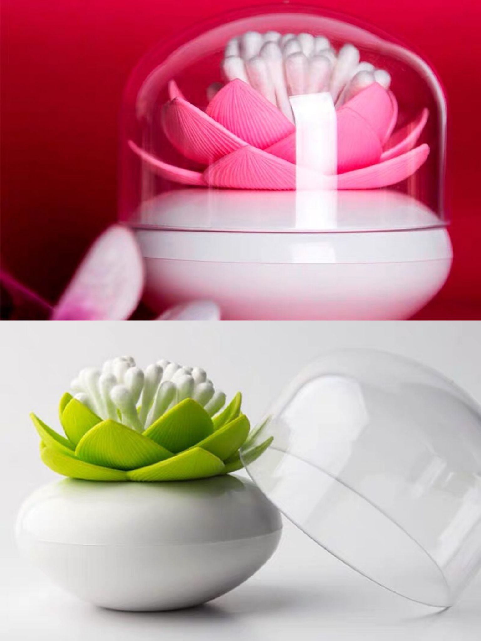 出淤泥而不染的莲花一向备受人们喜爱,将棉签放置在莲花的中心,正好形似莲花花蕊,而且这样的收纳除了让使用者觉得洁净安心,也体现出使用者的生活态度与品位。