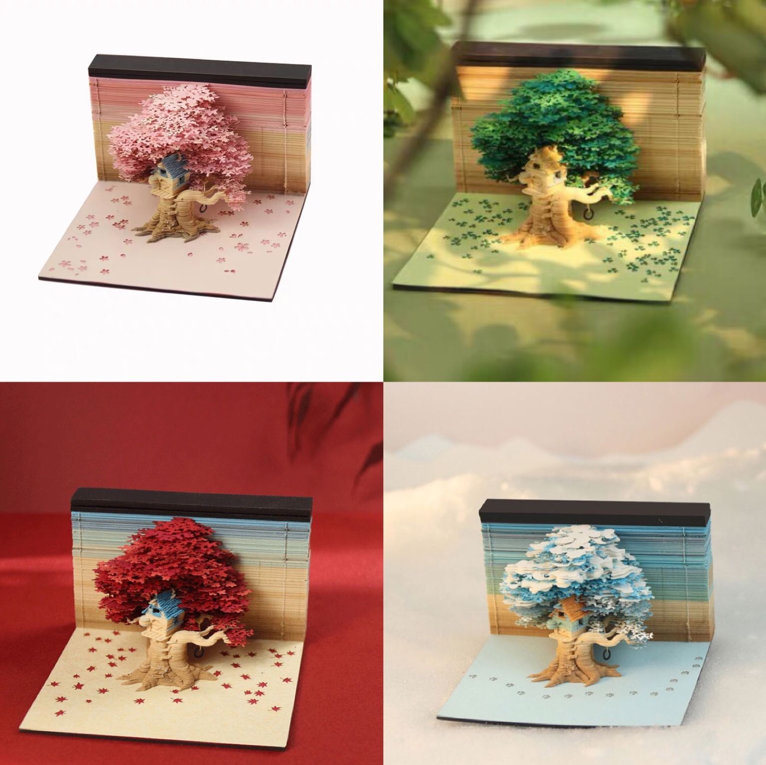 当你刚拿到这个便利贴时,会觉得平平无奇。但是惊喜会随着你一页一页地使用便利贴后逐渐展现,直到一棵梦幻的樱花树或枫树完全展露“真容”。