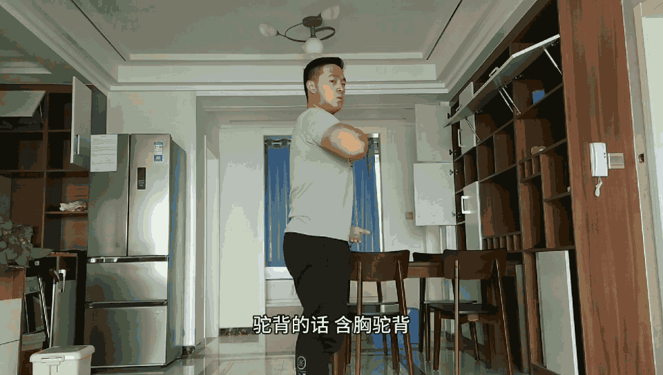若人体存在驼背(含胸驼背、圆肩)的体态,双手延长线夹角会越来越小,直至相交。(下方手向上延伸,上方手向下延伸。)