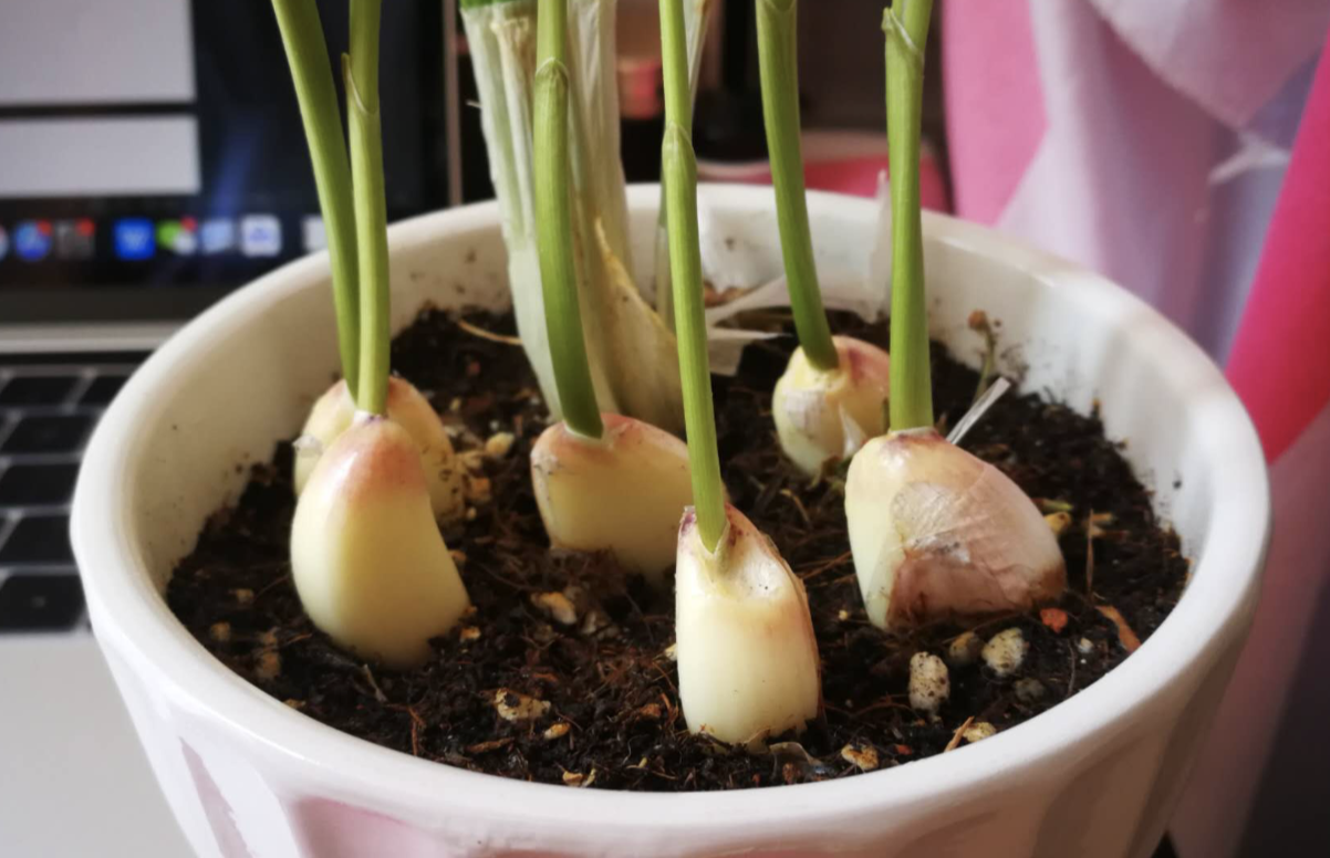 蒜苗由于风味独特,受到很多人喜欢。蒜苗种植简单易操作,将大蒜清洗干净直接栽种到花盆中,经常浇水就可以了。等到蒜苗长出,可以剪下做菜,剩余的蒜苗还能重复生长。