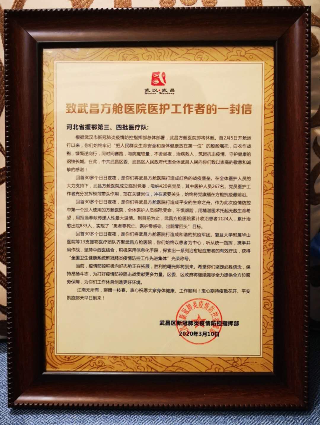 武昌区新冠肺炎疫情防控指挥部给队员们的一封信