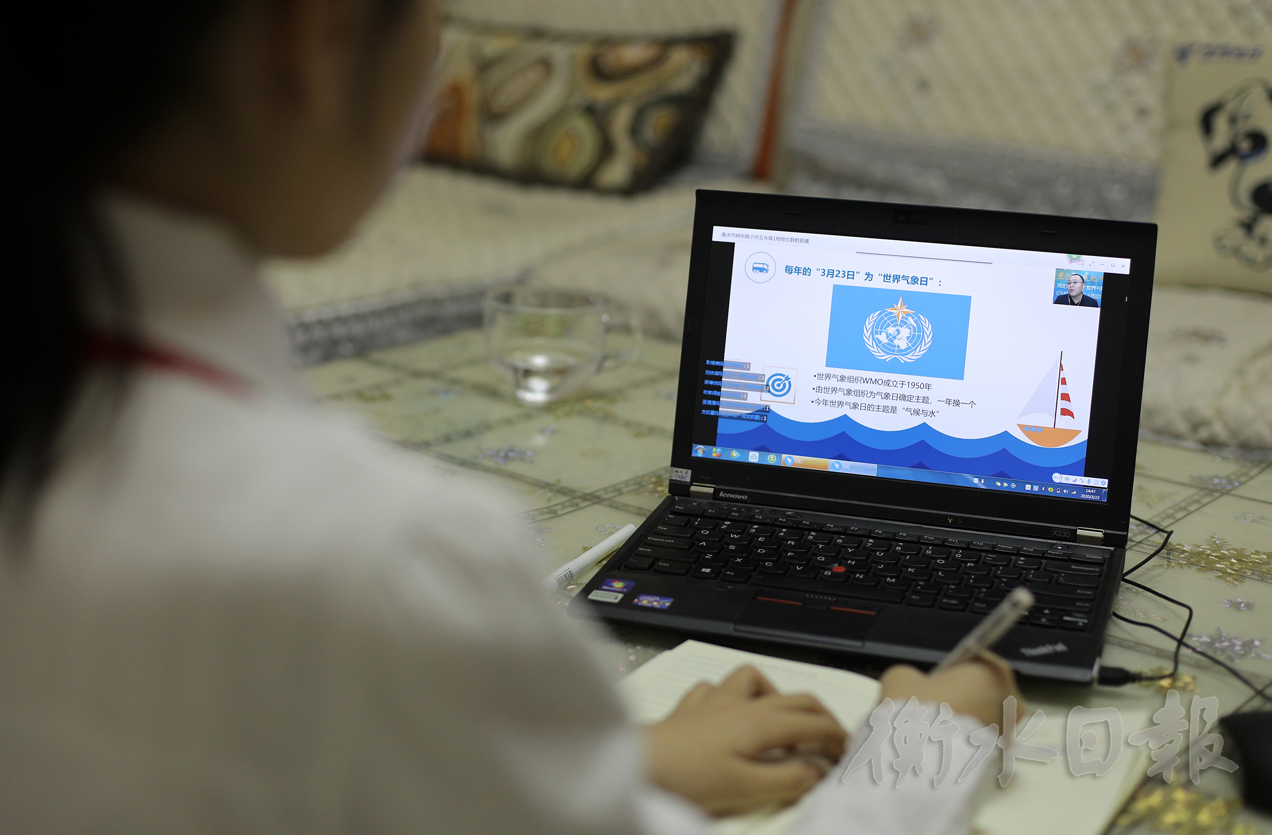 3月22日,衡水市裕华路小学组织学生在家中通过直播认真学习气象知识。