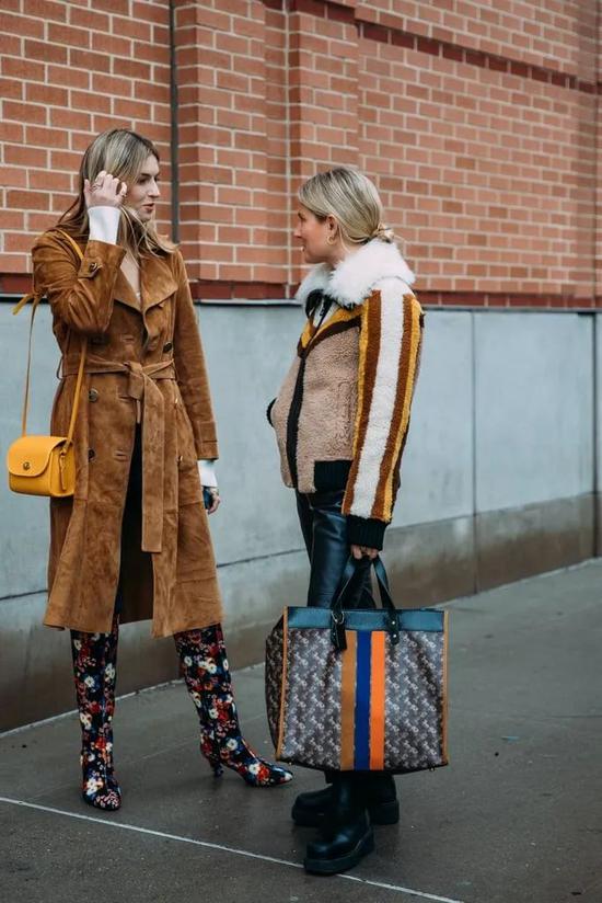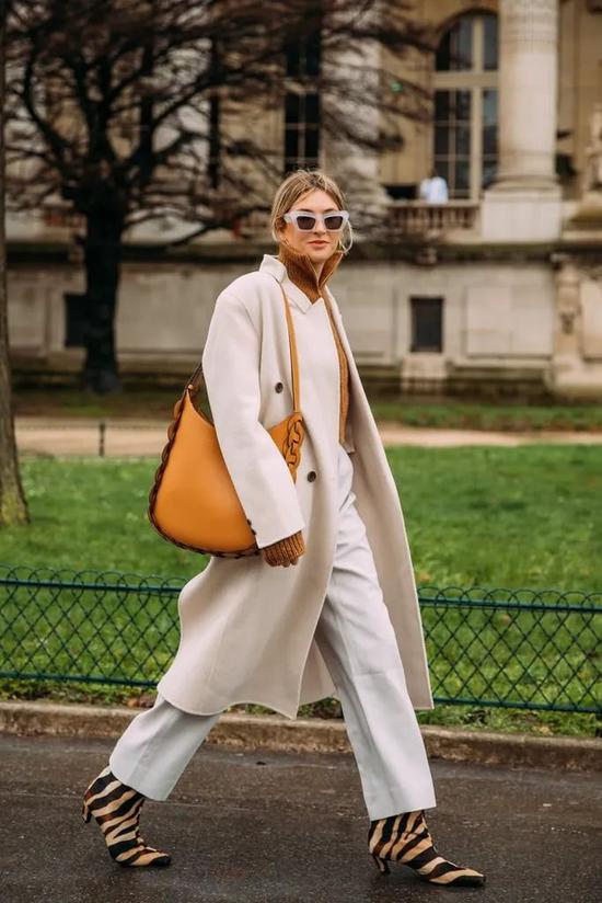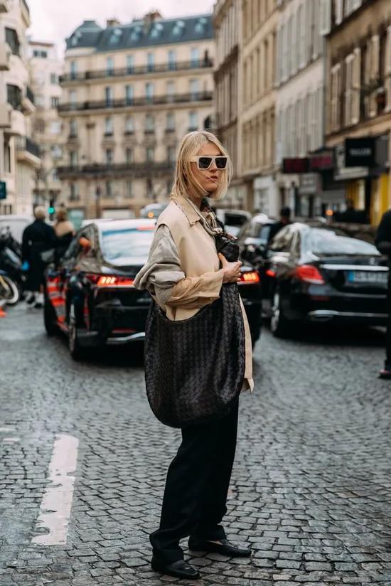先说说单肩包,之前它已经淡出时尚舞台了的,今年用“复古”的姿态回潮。外观有了不少变化,当年小V她们背的那种单肩包,现在在秀场外演变成了更加“嚣张”的样子。