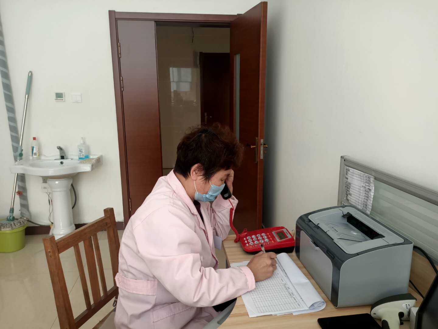“内外结合”持续深入打好疫情防控“攻坚战”。自疫情防控集结号吹响以来,冀州区妇幼保健与计划生育服务中心积极召开疫情防控专题会议,统筹安排,全体党员干部和医务工作者立即进入紧急战时状态,以“节不过、年不过”的劲头,全力以赴做好疫情防控工作。安排专人在站点卡口、车站、包联小区24小时轮流值守开展测温、登记、排查工作,并统计上报;安排专人在预检分诊处对每一位到院的医务人员、患者、陪同人员进行发热预检,询问近期是否外出、是否与外地人员有接触史等,经询问并测量体温后,并按要求做好相关登记,才能进入。同时,每天坚持对院内院外、诊室、楼道、电梯等进行消毒和紫外线空气消毒,全方位无死角消杀,切断病毒传播途径,为全体医务人员和就诊患者提供安全环境。