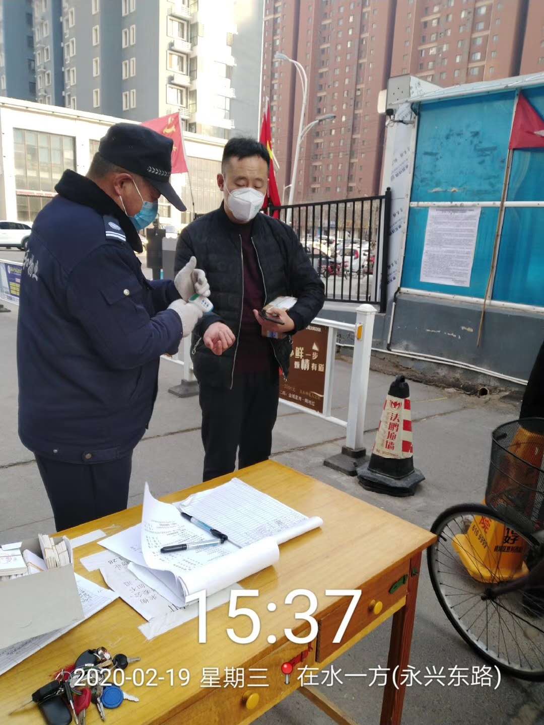 “您好!进入小区先请量体温!”步入在水一方小区,每个入口都有物业人员全天24小时值守。简单枯燥的工作成千上万次地重复,但他们没有任何不耐烦。遇到不配合的业主,他们耐心做工作,不急不躁,不斗嘴,不起纷争。“我们是为业主健康着想,是在做有意义的事儿,不能烦,也不能恼!”在水一方物业保安郭义表示。