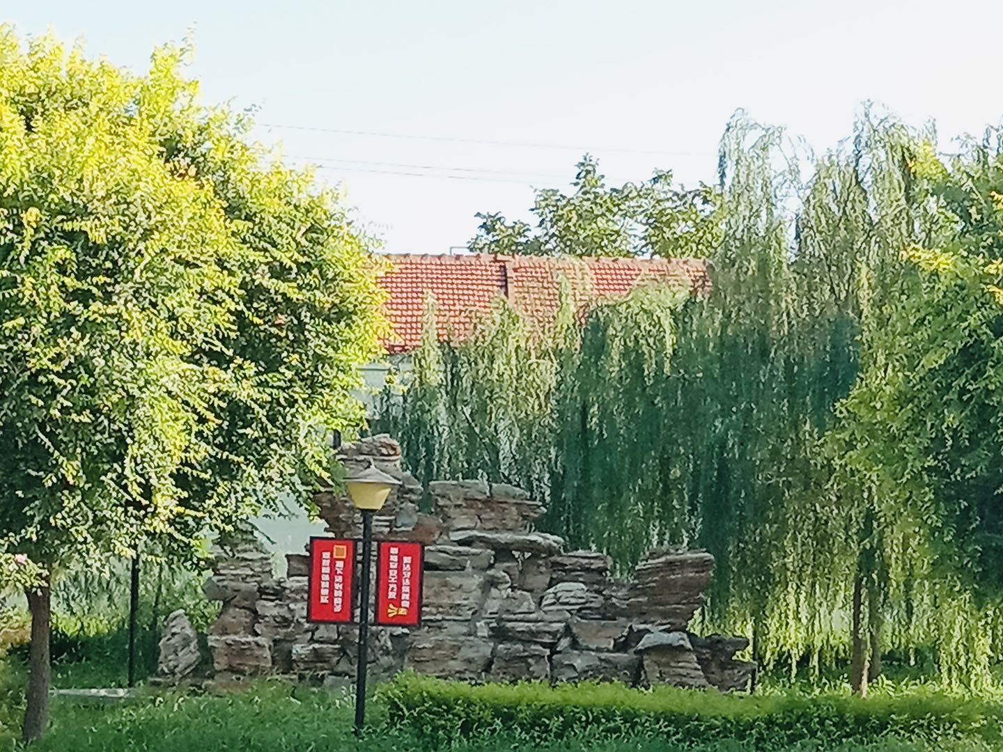 松树、冬青、竹子……满目翠绿的生态文化公园给疫情期间的村民带来愉悦的心情。