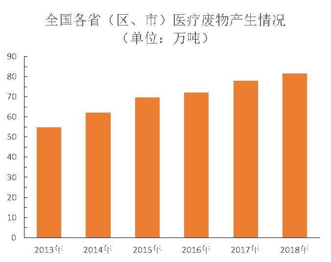 由于医疗水平增高等原因,医疗机构来源的医疗废物产量逐年递增,对处置能力的要求也随之提高。虽然对于医疗机构外的医疗垃圾并未有官方的统计数据,但是科技在发展、国民医疗卫生意识在增强,血糖仪等居家治疗或检测项目随之兴起,家庭一次性卫生用品(如口罩)使用随之增多,家庭来源医疗垃圾的数量必然也在逐年增加。