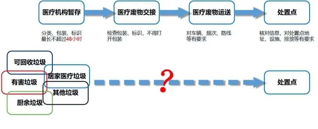 有没有觉得分类中的某些例子有点眼熟?其实严格来说,医疗垃圾并不仅仅产生在医疗卫生机构,日常生活中也会产生医疗垃圾:过期的药物,废弃的体温计,糖尿病患者注射胰岛素的废弃注射器,用碘伏或酒精涂抹过伤口的棉签,从伤口上抠下来的创可贴,疫情期间出门必备的口罩……仔细琢磨一下,医疗垃圾与我们关系密切。大家是怎样处理这些医疗废物的呢?这些垃圾最终会去往哪里?
