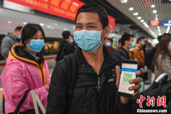 湖北籍务工人员乘坐高铁抵达广州南站。