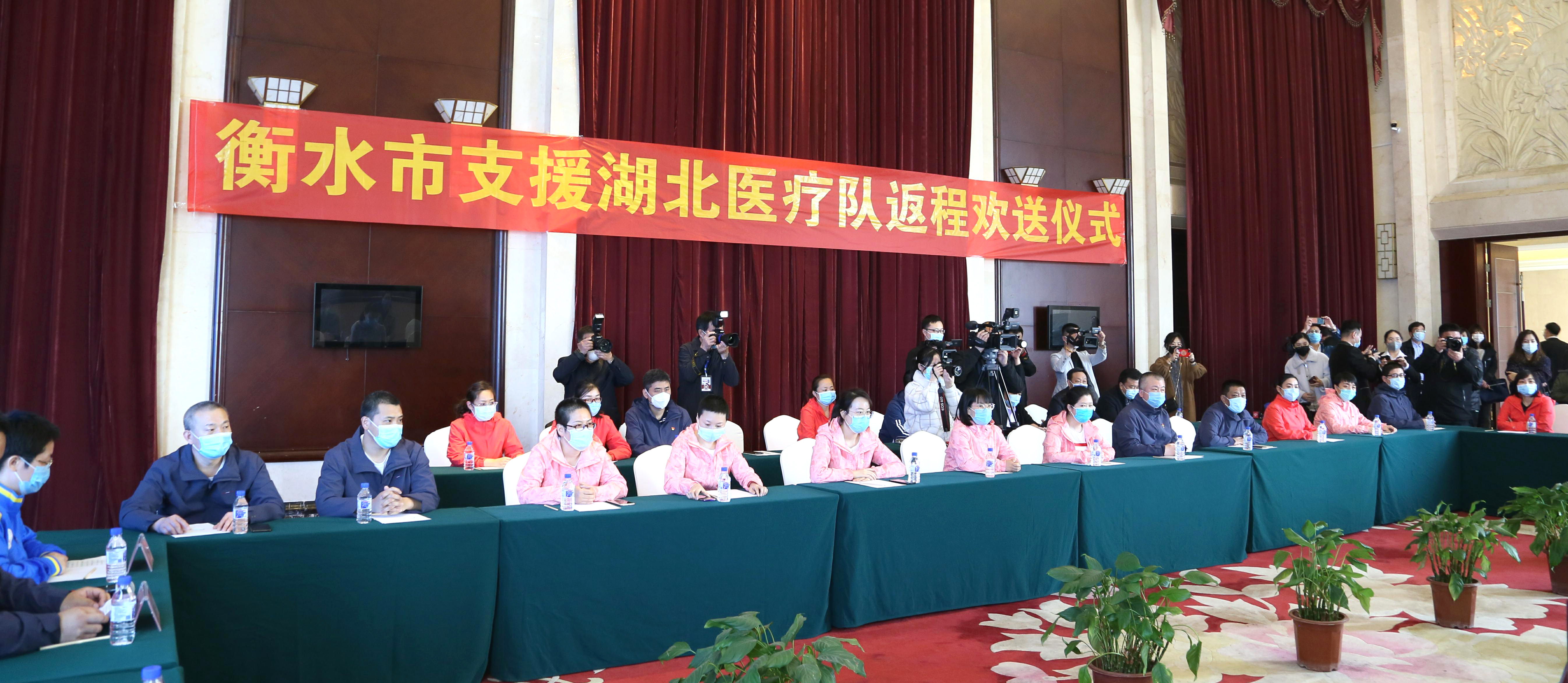 1月26日以来,我市共派出了五批68名医护人员支援湖北,其中58名医疗队队员凯旋后完成了休整。他们分别来自市级及县级的15家医疗单位,分别对武汉市第七医院、金银滩医院、江岸方舱医院、武昌方舱医院、江夏区第一人民医院进行医疗支援,数十天的奋战,他们见证了患者康复的喜悦,见证了英雄的武汉人民,收获了患者的感恩和武汉人民的真情。他们一路不畏危险、勇往直前,以血肉之躯构筑起护卫武汉人民生命安全的钢铁长城,完成了市委市政府交托的任务,实现了“住院患者零死亡、医护人员零感染、在院患者零回头”,兑现了出征时“不辱使命”的诺言!给湖北人民和衡水人民,交上了满分答卷!