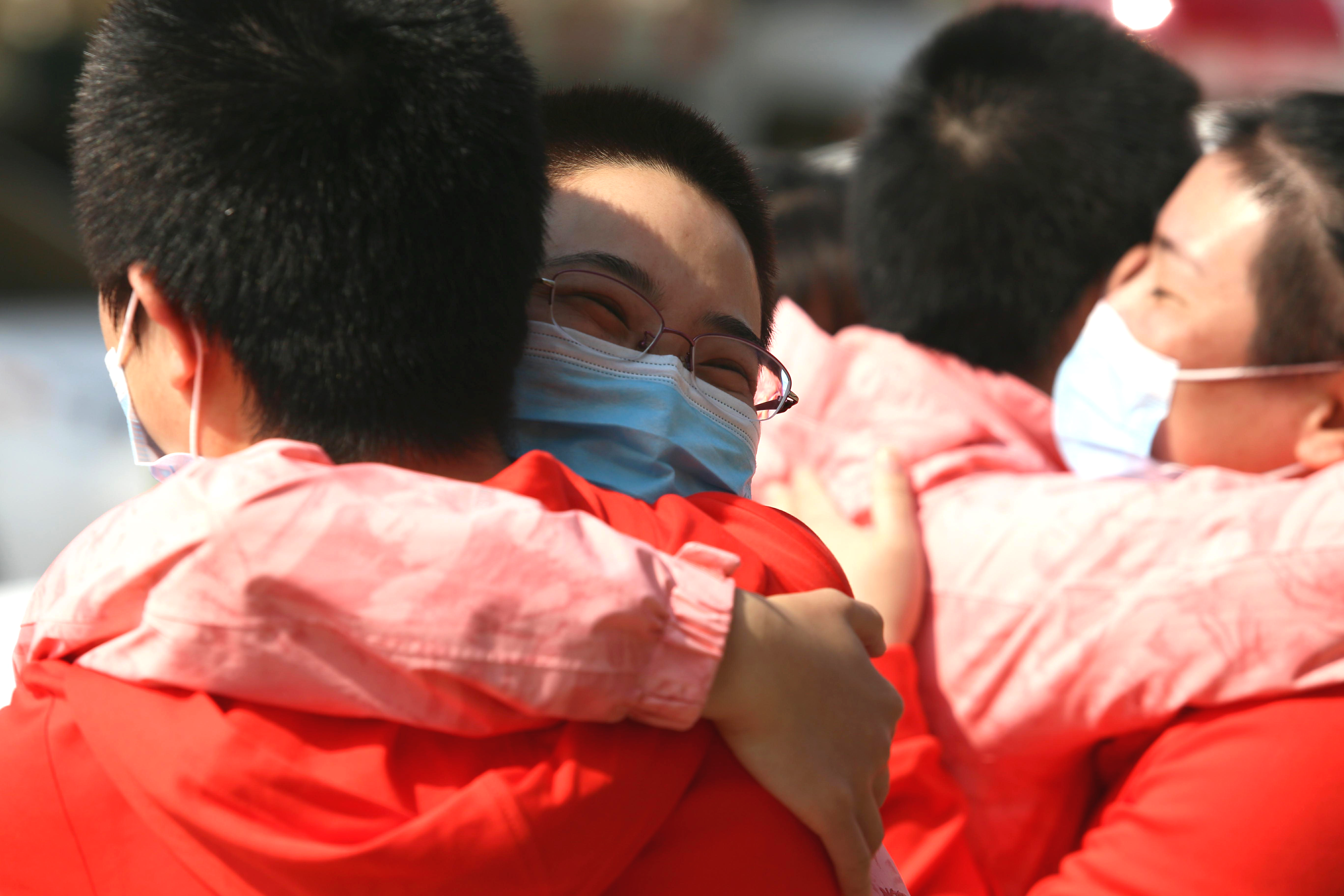 数十天的并肩战斗,衡水支援湖北医疗队的队员们早已结下了深厚友谊。纵有千般不舍,终将离别。队员们拎着行李缓缓走出酒店大门,不停地向同伴挥手作别,有的已经热泪盈眶,“再见了,我会想你们的!”“咱们明年一起在樱花树下畅游吧!”“等疫情过去了,我们定要好好地喝一杯!”……一句句不舍的道别、一个个紧紧的拥抱,这段特殊的战“疫”经历和“过命”的战友情,队员们必定铭记一生。“之前我们聊天的时候,就说看看分别的时候谁会第一个落泪,没想到大家几乎同时控制不住了!”衡水市六院急诊科护士李森,不停地向同伴们挥手,他说,之前他为队员们拍了很多视频,以后这些视频画面将会成为他最美的回忆。