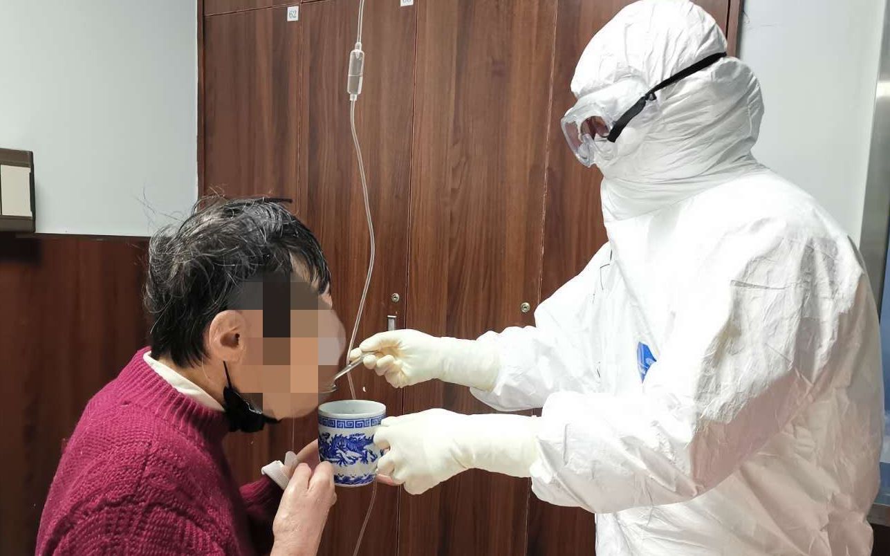 病区里大部分为老年人,有的生活不能自理,又没有家属陪同。我们定时细心的为病人喂饭、喂药、翻身、清理大小便,耐心安抚他们的情堵,竭尽全力减轻患者的痛苦。有的病人病情危重我会守在病人身边细心的观察着病人的各项生命体征,积极配合医生把病人从死亡边缘抢救回来。随着疫情形势的严峻,看着各种插管,听着机器的报警声,在住进医院的那一刻,许多患者都觉得恐惧感袭遍周身,有的变得特别烦躁。安抚患者的情绪是一项十分重要的工作,面对患者,我们总是安慰大家,"请您放心,有我们在一切都会慢慢好起来的!”