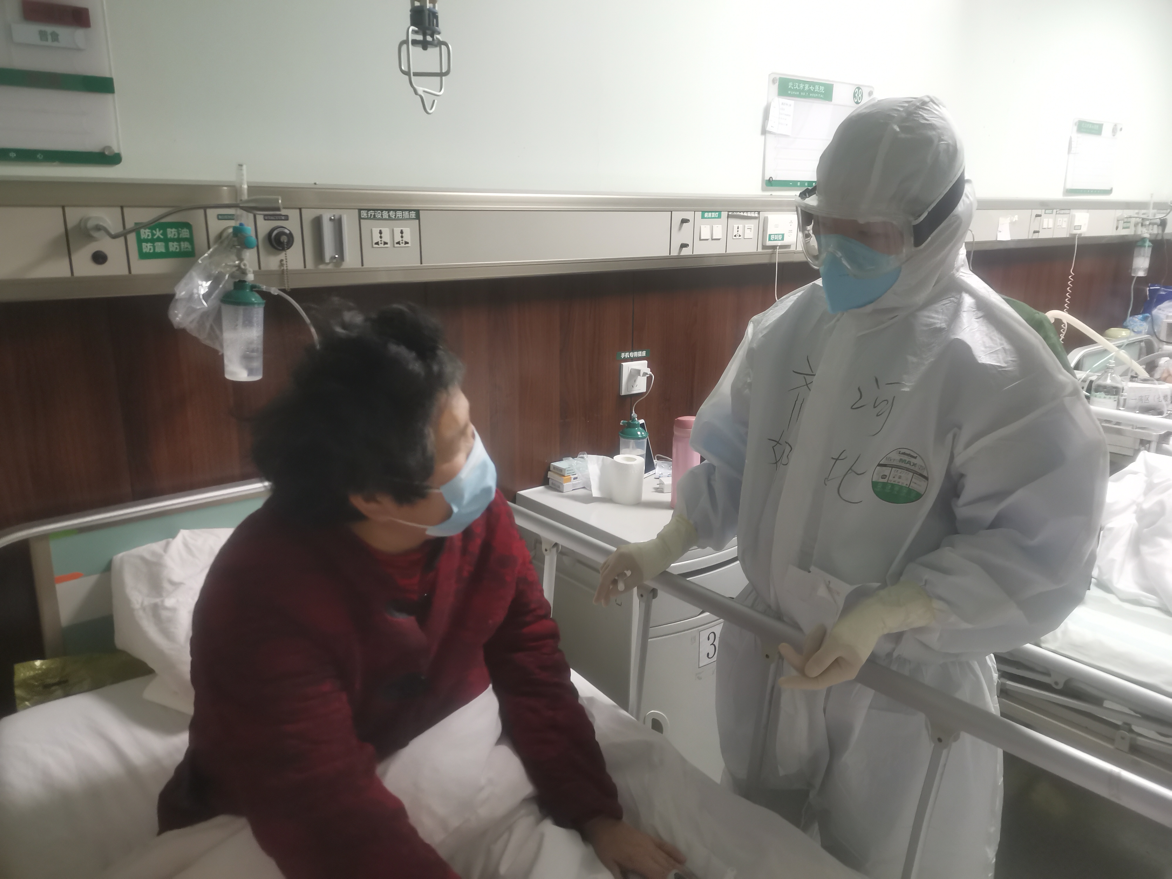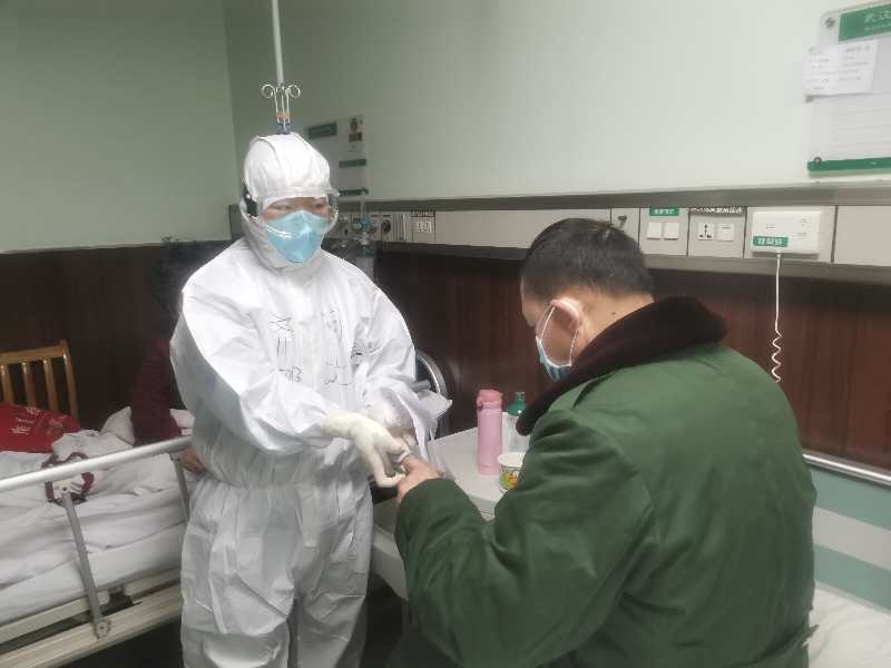 隔离病房与我们平时的普通病房最大的区别是,家属不能陪床,患者往往很焦虑。我时刻关注着患者们的心理变化,疏导他们焦虑的情绪,及时把肺炎正在吸收、核酸转阴的好消息告诉他们。有的患者核酸检测一直呈阳性,心理压力很大,我告诉他“不要担心,你的肺炎已经在吸收好转了,虽然不知道什么时候能转阴,只是个时间问题了”。还有,武汉话不好懂,尤其老年人方言口音重,有时就连邻床的武汉人都听不明白,我只能求助护士当“翻译”,或者用纸、笔交流。往往沟通需要很长时间,但这里没有他们的家人,他们需要有人倾听他们的心声,缓解他们的焦虑。患者们出院时激动地说,他们感谢河北,一定在疫情结束后到美丽衡水来看我,我也被他们的感恩与坚强感动着。