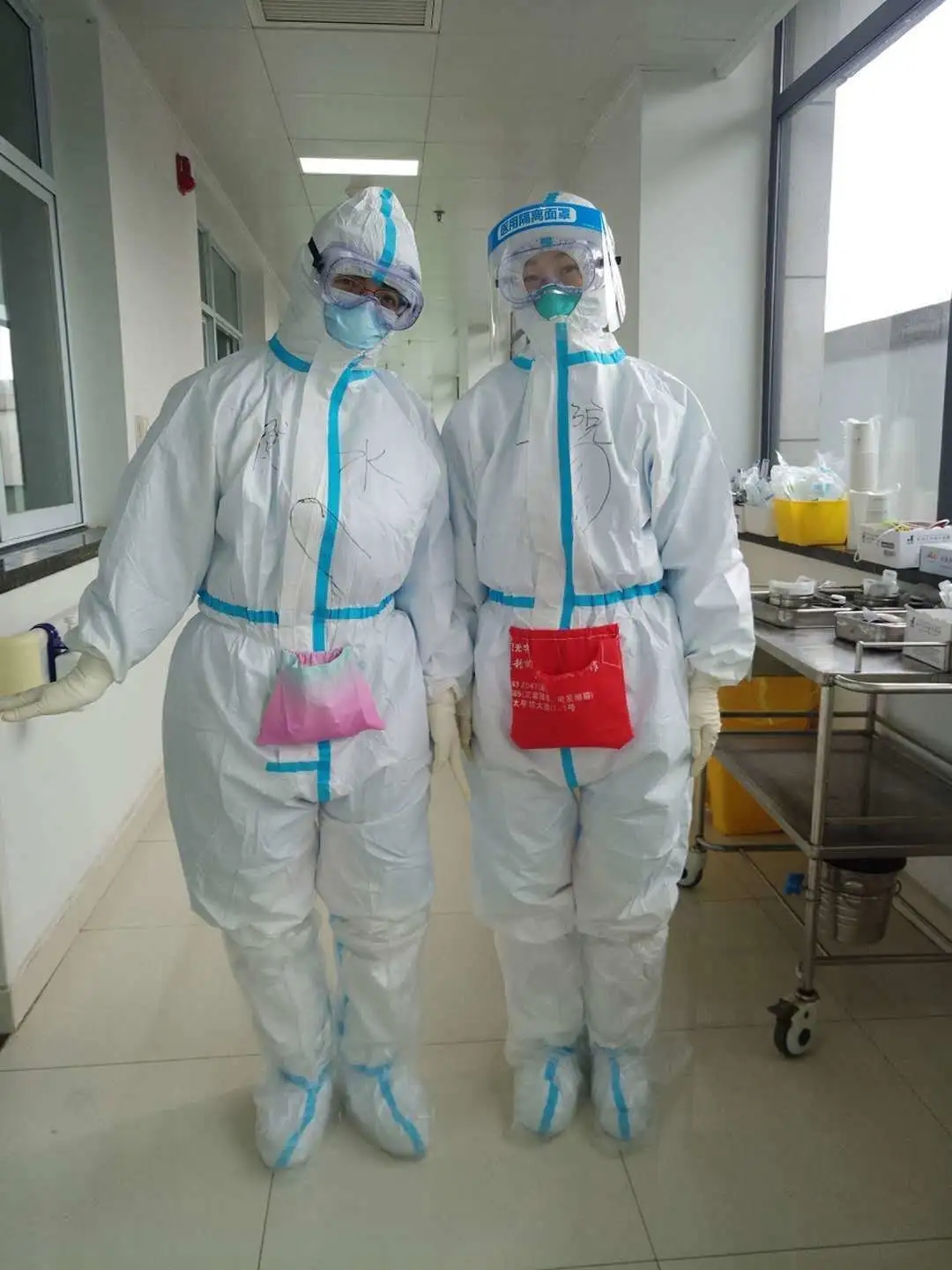 慢慢地,我们对自己的流程越来越熟悉,和本科室的战友配合越来越默契,和患者之间越来越信任,一切问题都迎刃而解。穿刺有困难的时候我们互相帮忙,沟通有困难的时候同屋病友会主动帮我们翻译。每次做治疗的时候,他们都会对我们说“你们辛苦了,冒着这么大风险跑这么远到这里来护理我们,谢谢!”“别着急,慢慢来,我不怕疼。”每次听到这些话,我都觉得心理暖暖的,觉得自己的一切付出都是值得的。后来有人问我病毒传染性这么强,你操作的时候不害怕吗?确实,我们输液采血随时有发生针刺伤的危险,采集咽拭子刺激患者咽部极有可能引起咳嗽,而我们和患者面对面不超过20厘米,这个距离会让我们暴露在充满气溶胶的环境中。但在当时的情况下,这种种危险我们都来不及考虑,从穿上这身防护服的那一刻起,想到的只是做好本职工作,并不是我们有多伟大,而是因为这是我们医护工作者的职责所在。