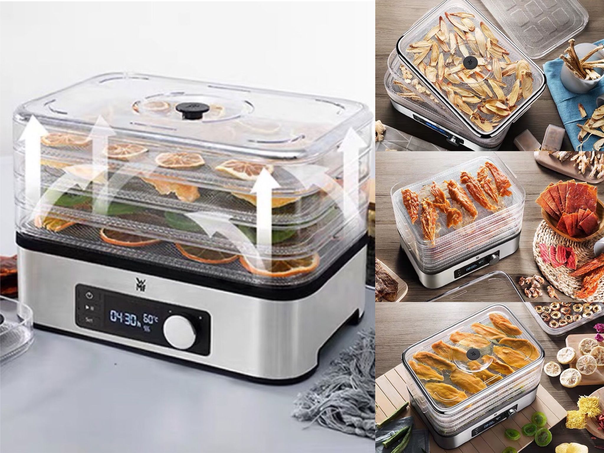 刷剧的时候,总爱吃一些蔬菜干或果干,但又总担心添加剂和卫生问题。WMF的这款家用风干脱水机完全可以满足你制作水果干、肉干和养生花茶中柠檬干的需求。5层大容量,不同的温度对应不同食材,为父母烘干药材、和朋友分享各种水果干,甚至还可以为宠物制作肉干。