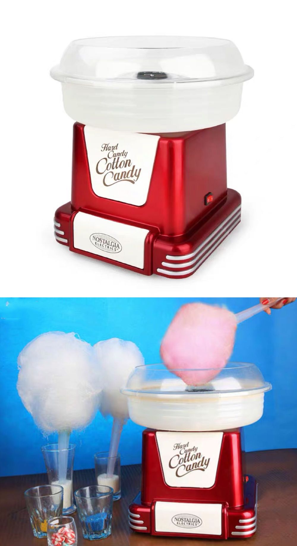 小时候站在棉花糖摊前看着一小勺糖变成大大的棉花糖是不是感觉挺奇妙的?这台家用棉花糖机既是电器,又是可以全家一起玩的玩具。无论是硬糖、砂糖或是冰糖均可以制作,2分钟左右就可以出丝。内置保险装置,温度过高就能自动断电,所有接触食物的部件均通过安全认证。