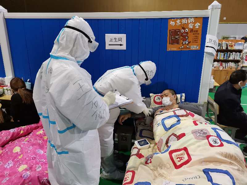 武汉武昌方舱医院是武汉第一家方舱医院,我们河北队首批首班独立承担护理工作,第一班岗6小时,面对300位患者,更多的是病情观察与心理护理。我一个一个跟所接管的30多病人介绍自己,询问他们有何需求。时间短,患者多,任务重,我们没有恐惧、没有害怕、更没有退缩……方舱医院的工作比较特殊,除了需要承担平时所做的护理治疗,更要照顾到患者的心理变化,做好他们的心理护理。随着护理的患者逐渐增多,我们队领导也是连夜研究,周密部署,科学调度,对护理班次和岗位也逐步增加和调整,从6小时制改为4小时制,为的只是能够让大家能有更好的状态进入到工作中,跟新冠肺炎病毒做斗争!