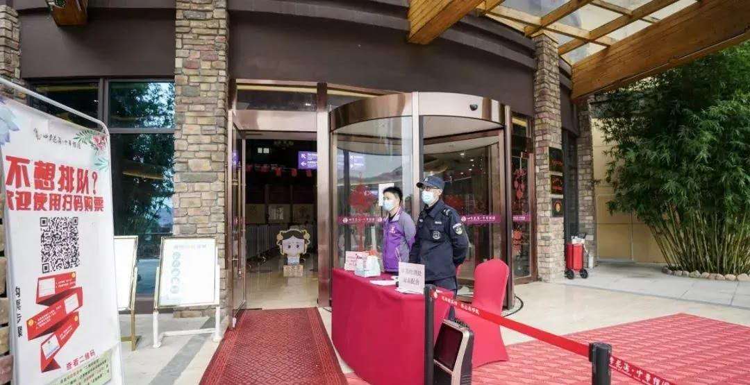恢复开放后,景区实行全员上岗制,工作人员利用广播、喇叭、电子屏等多种方式提醒游客全程戴好口罩,保持1.5米以上安全间距,不扎堆,不聚集。同时,景区还组织安全专员巡回提示,维护游览秩序。