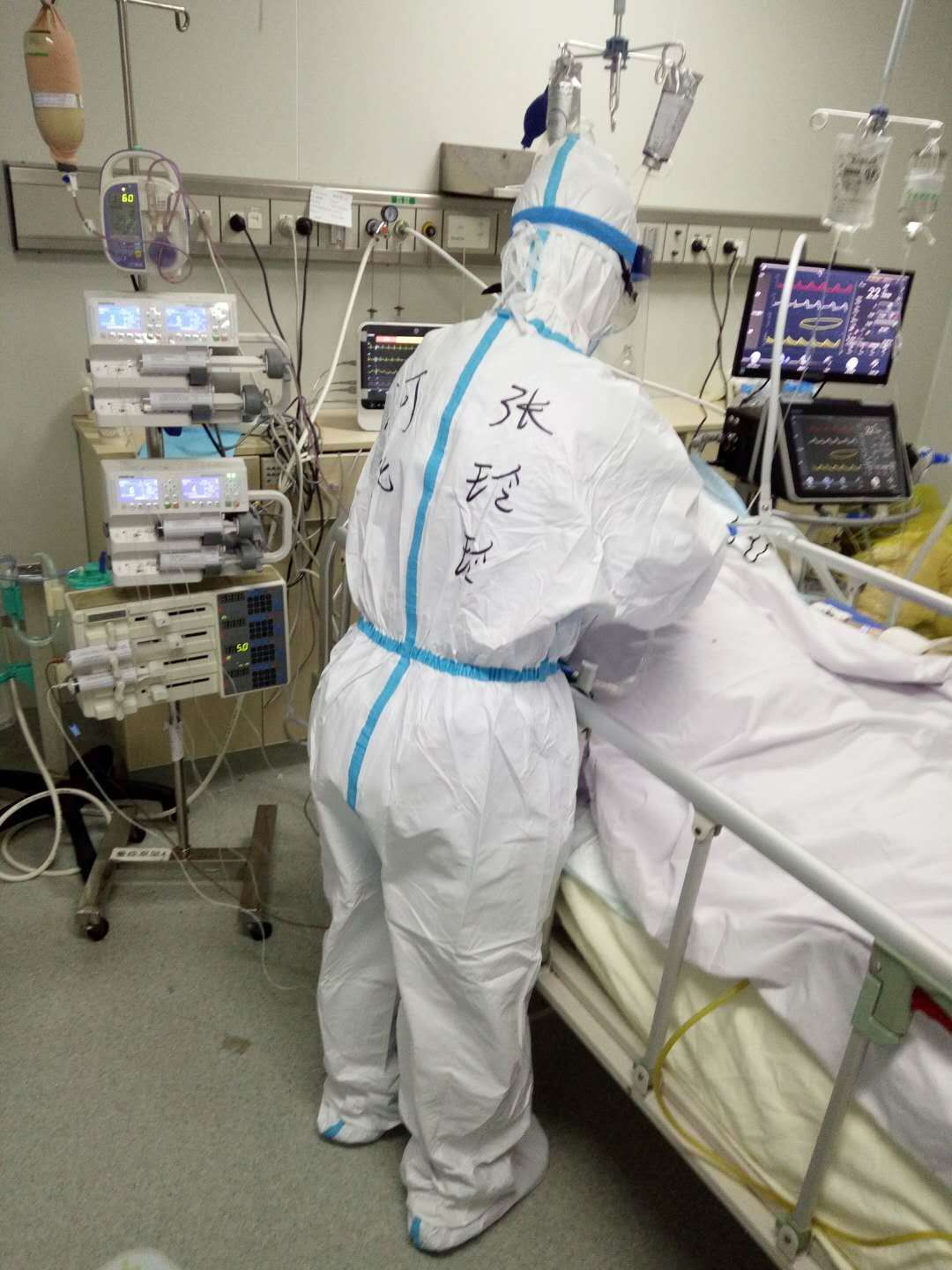 张玲玲在武汉市第七医院重症监护室护理病人