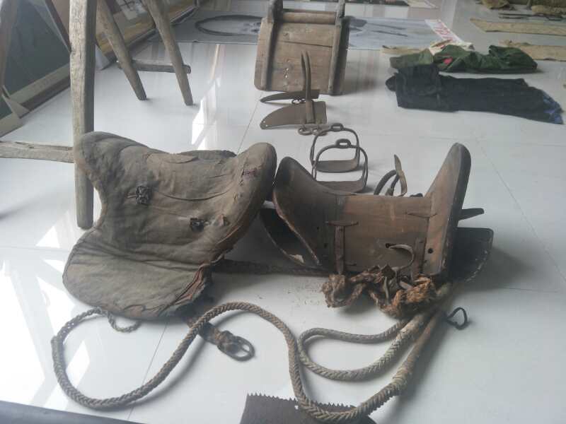 二楼展厅还有反扫荡时期,冀中抗日军民使用过的,冀中军工厂自制的迫击炮,安平军民在滹沱河两岸袭击日寇汽艇用的大抬杆,八路军冀中骑兵团使用过的马鞭和马镫,穿过的服装,还有行军床、军号、大刀、水勺,以及十余块功德匾……一件件实物真实反映了当时冀中军民艰苦的抗战环境,以及不怕牺牲和坚毅的抗战精神。