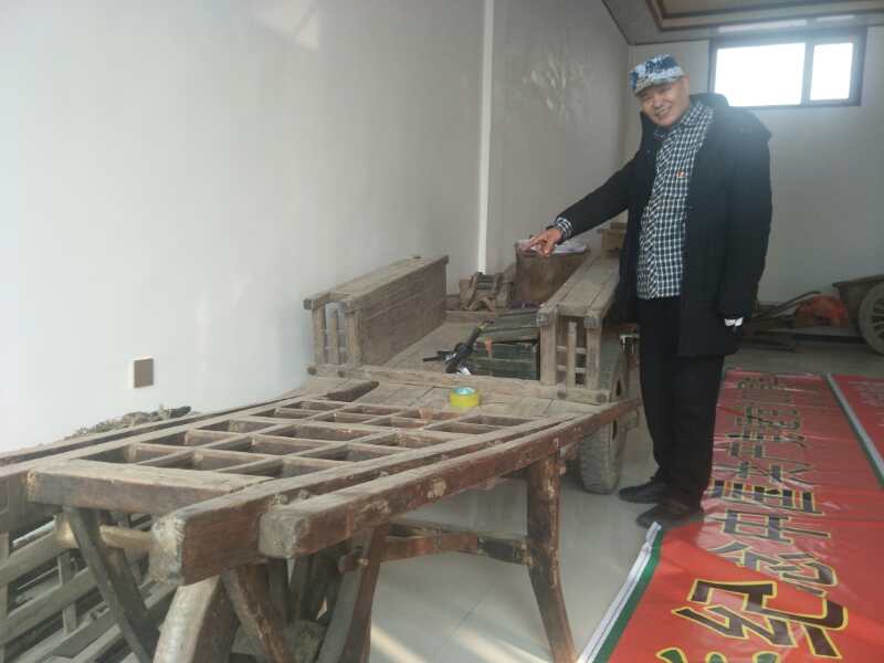 王建忠的红色文化收藏馆为二层沿街楼。三辆架子车、织布机和扇车占据了一楼房间的多半空间。王建忠介绍,架子车是抗战时期和解放战争时期,安平老百姓支援前线运送被服、粮食和武器的工具;安平老百姓用织布机织布,再用布缝制军衣、军鞋和军帽;扇车的作用就是保障运往前线的粮食都是干净的,农民把刚打下的粮食放在扇车里,就会把其中的麦皮、米糠或其它杂质分离出来;还有台城村被服厂使用过的缝纫机,做鞋用的鞋底夹子等等物品。虽然这些物品都已经老旧或破损,但都记录着安平县人民群众支援抗战和拥军爱国的炽热感情。