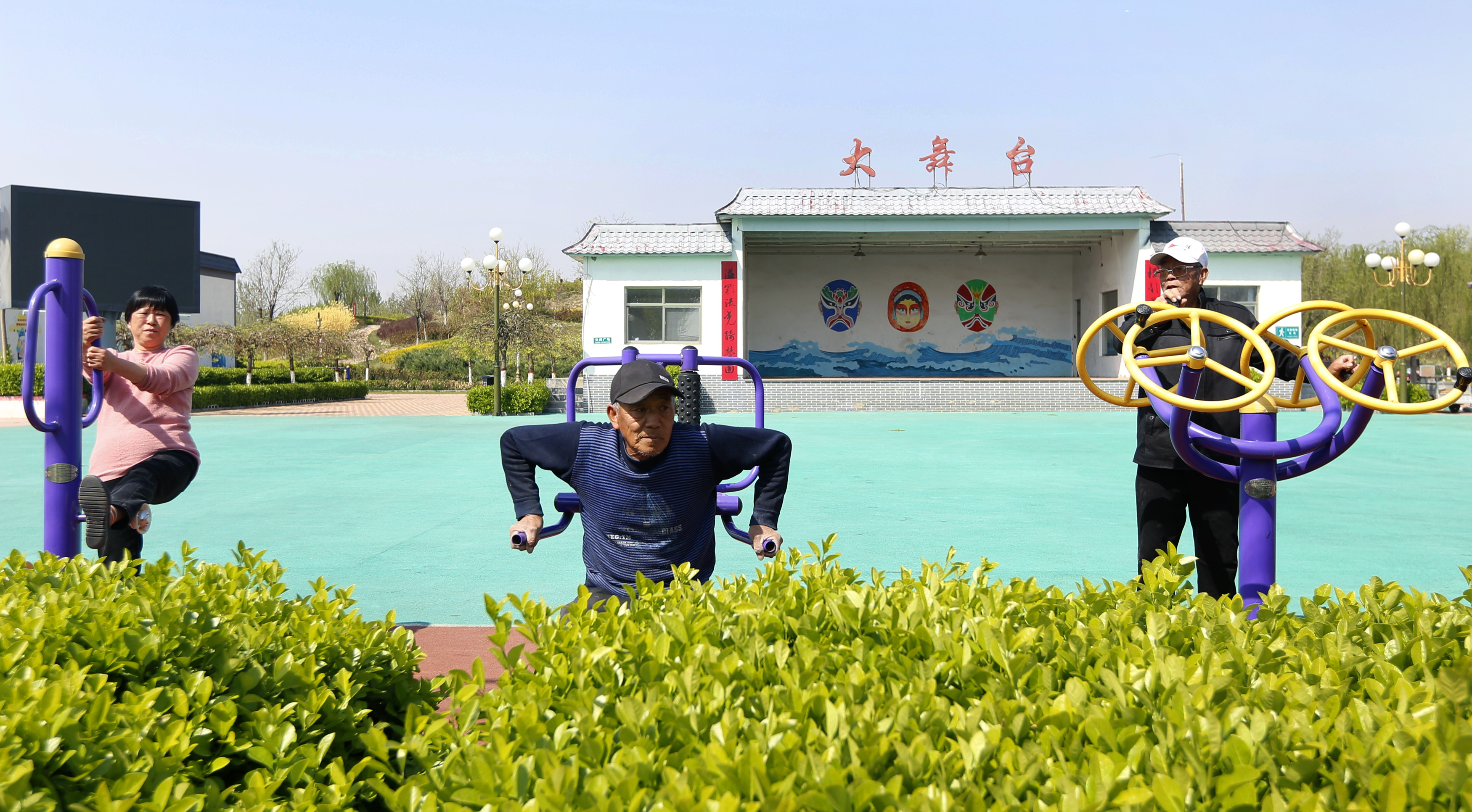 阜城县冯塔头村村民在休闲广场健身锻炼。