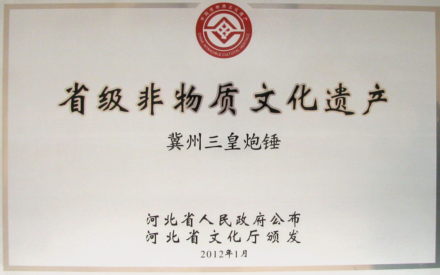 2012年1月,冀州三皇炮捶被列入河北省非物质文化遗产名录。