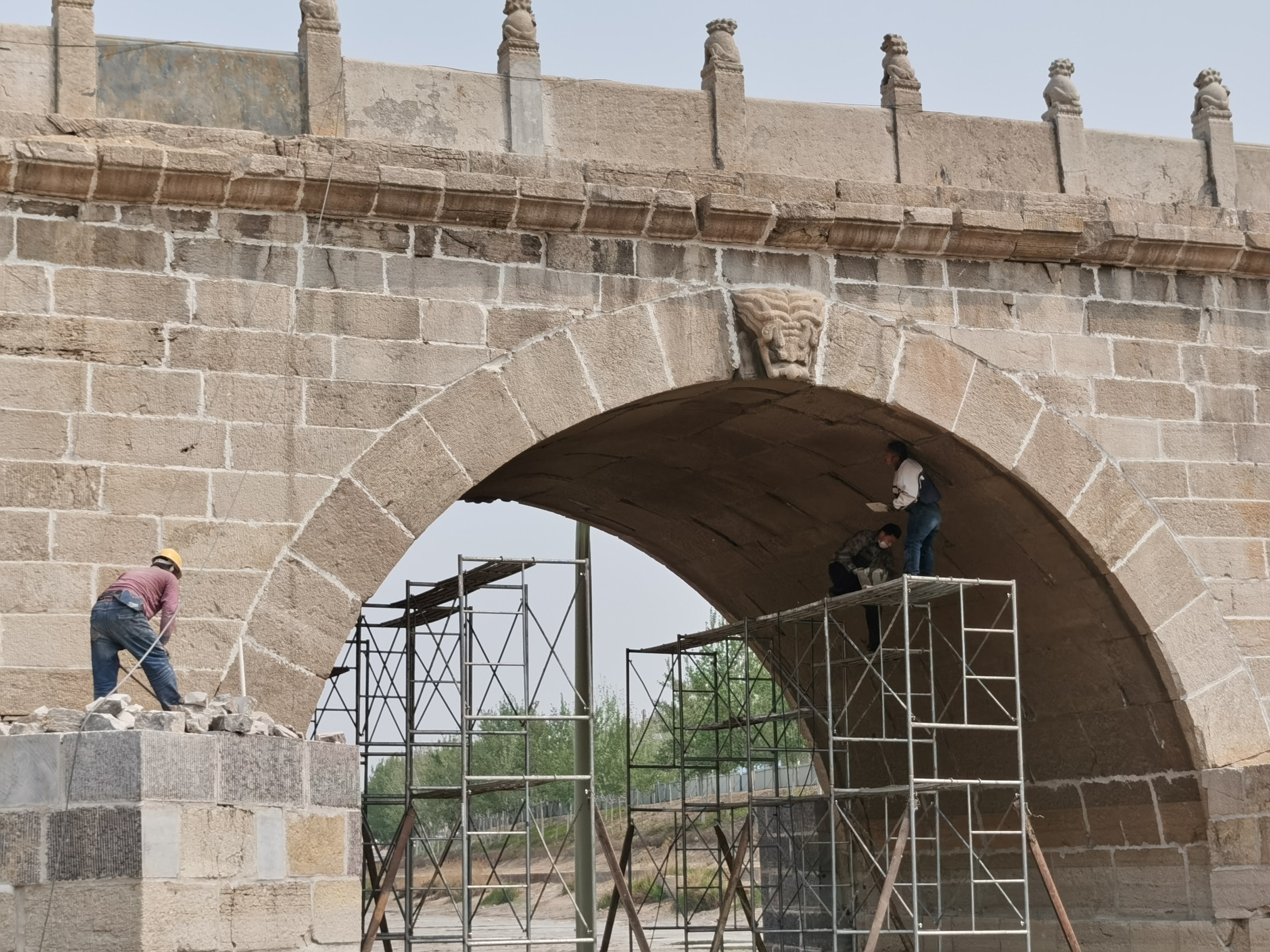 据了解,此次修缮工程按照国家文物局对《衡水市安济桥维修加固保护工程设计方案》批复要求进行施工,拆除已实施的毛石护坡、亲水平台地面等,清理各孔淤积土到河床地面,恢复安济桥七孔结构;归位、加固桥洞松动的拱券石,对拱券石缝重新勾缝;清理安济桥河道两端淤土,使两边金刚墙全部露出;清理“敕建安济桥碑记”周边杂物、垃圾,适当硬化,改善石碑周边环境。