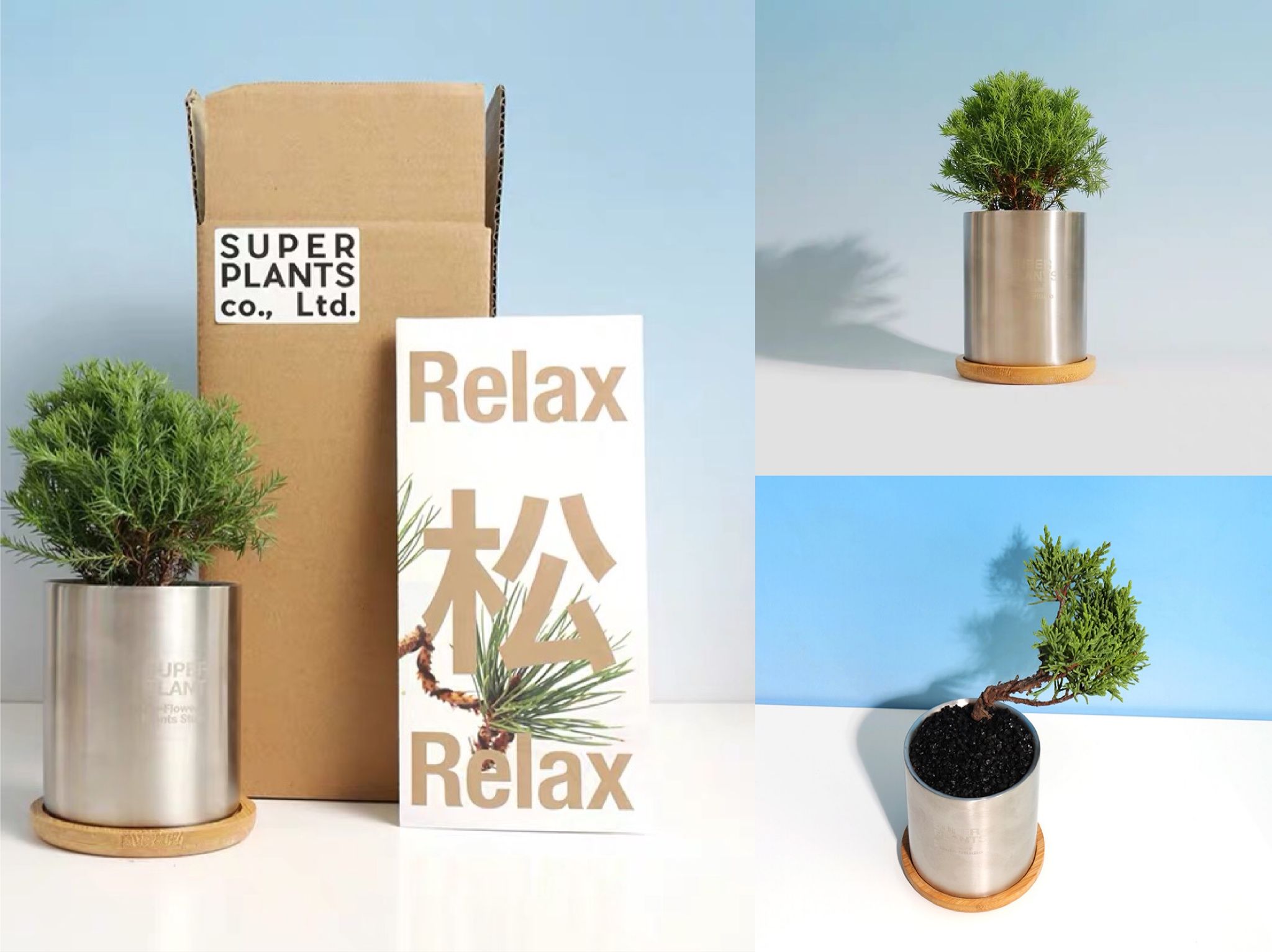 “请放松”就是“请在桌上放一棵松树”,打开“请放松”礼盒,你会看到小小的松树苗郁郁葱葱,拿掉棕椰丝、铺上小石子,就“大功告成”了。不锈钢金属花盆底部留有透气孔,你需要的就是给它浇浇水。请放松,放轻松,就这么简单。