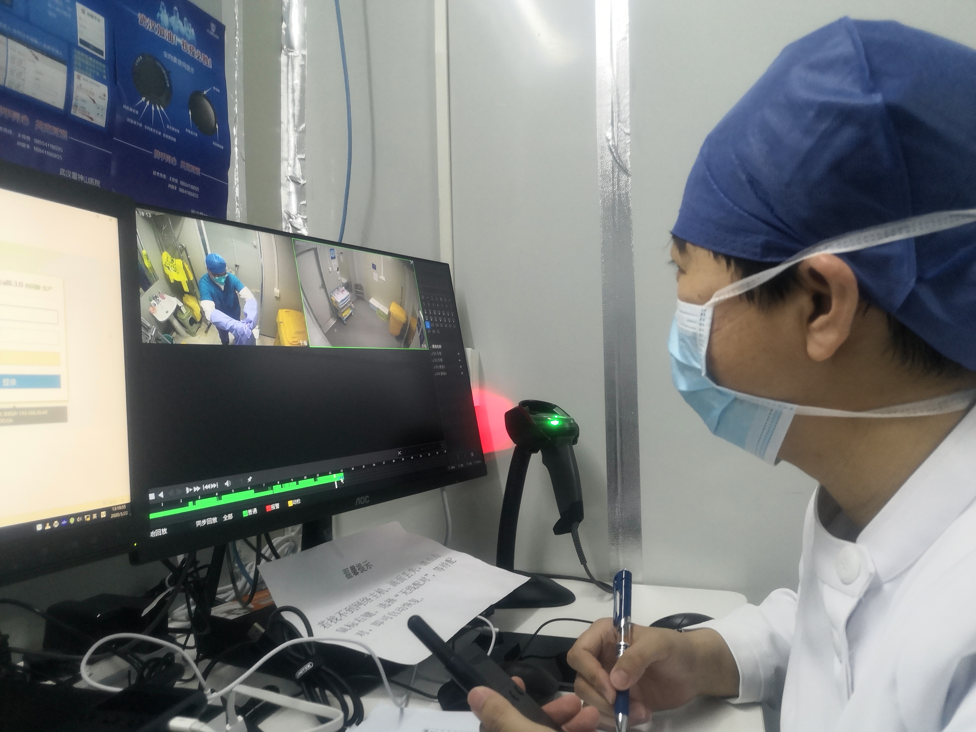 作为大家的守护神,为确保医护人员和患者的绝对安全,我每天早早来到病区,对整个病区进行巡视检查,监督帮助工作人员穿上防护服,戴好护目镜和手套,逐一检查大家穿戴合格后才允许他们进舱救治患者。等到他们下班,第二批上班时,我再监督他们脱下防护服、第二批穿上防护服,对于穿脱不规范的,立即使用对讲机予以纠正,并及时做好登记,并在下次穿、脱防护服时特别提醒注意事项。对于大家普遍存在的共性问题,将监护系统的视频截图发到微信群中,说明正确做法,提醒全体队员注意。每次都是等他们交接完,看着第二批安全进入后我才放心。可以说在雷神山医院,我的在班时间是最长的,每天必到,但是我很高兴,因为这期间没有发生一例院内感染,虽然累但是我很快乐!