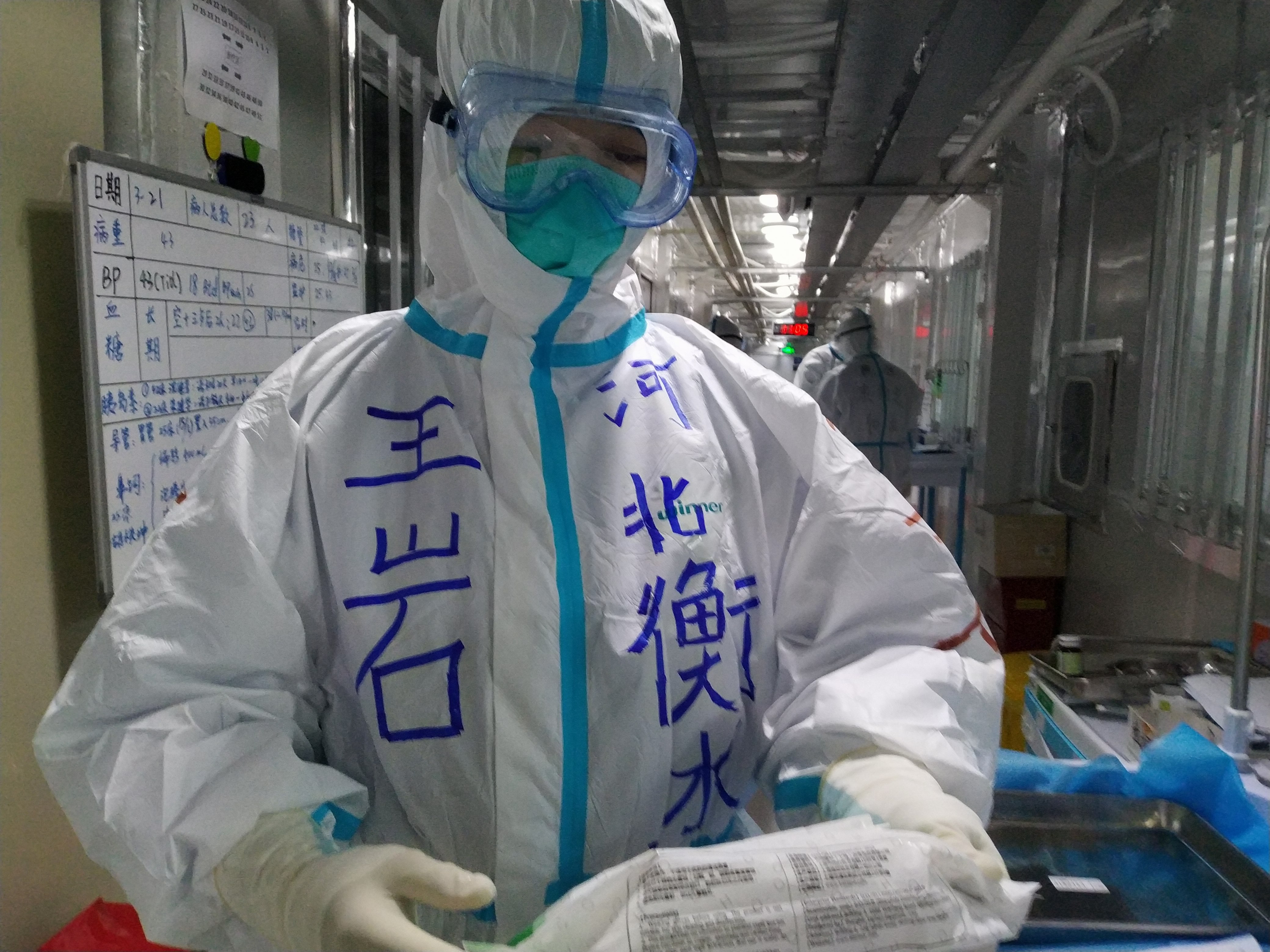 疫情就是命令,2020年2月19日,一声令下,衡水市第四批支援湖北医疗队立即踏上征程,赶赴武汉。我们进驻的是武汉大学中南医院,这里收治的都是新冠肺炎确诊并伴有基础病的患者,由于我年龄偏长,且一直在急诊一线工作,经验比较丰富,且平常担任病区护士长有一定的管理经验,所以有幸被临时任命为护理三组副组长,负责对大家的培训。说实话,做为院级教学老师的我,培训工作经常做,不管是理论培训还是技能培训,无数次的培训经历从未像现在这样感觉责任重大,因为这关系到大家的生命安全,也关系到我们河北的荣誉。在进驻医院之前,院感专家李六亿教授为我们进行了专题讲座,从新冠肺炎的传播途径到医护人员的个人防护,事无巨细地做了详细的讲解,其实说实话,医疗队中来自感染科的医护人员并不多,在最初的阶段,大家或多或少还是紧张的,不知道即将面临的工作环境和工作强度,平时的练习和实战是有区别的。所以我首先以身作则,虚心请教,先当学生再当老师,细致讲解认真示范,不敢有一丝一毫的遗漏和疏忽。大家也都认真听、认真记、认真练,尤其是穿脱防护服的过程,因为我们都知道只有做到严密防护了,才能确保我们自身的安全,才能更好地去救助病患,才能更好地打赢这场仗,实现“零感染”的目标,所以大家在练习时都很用心,相互监督,相互指正,确保万无一失。