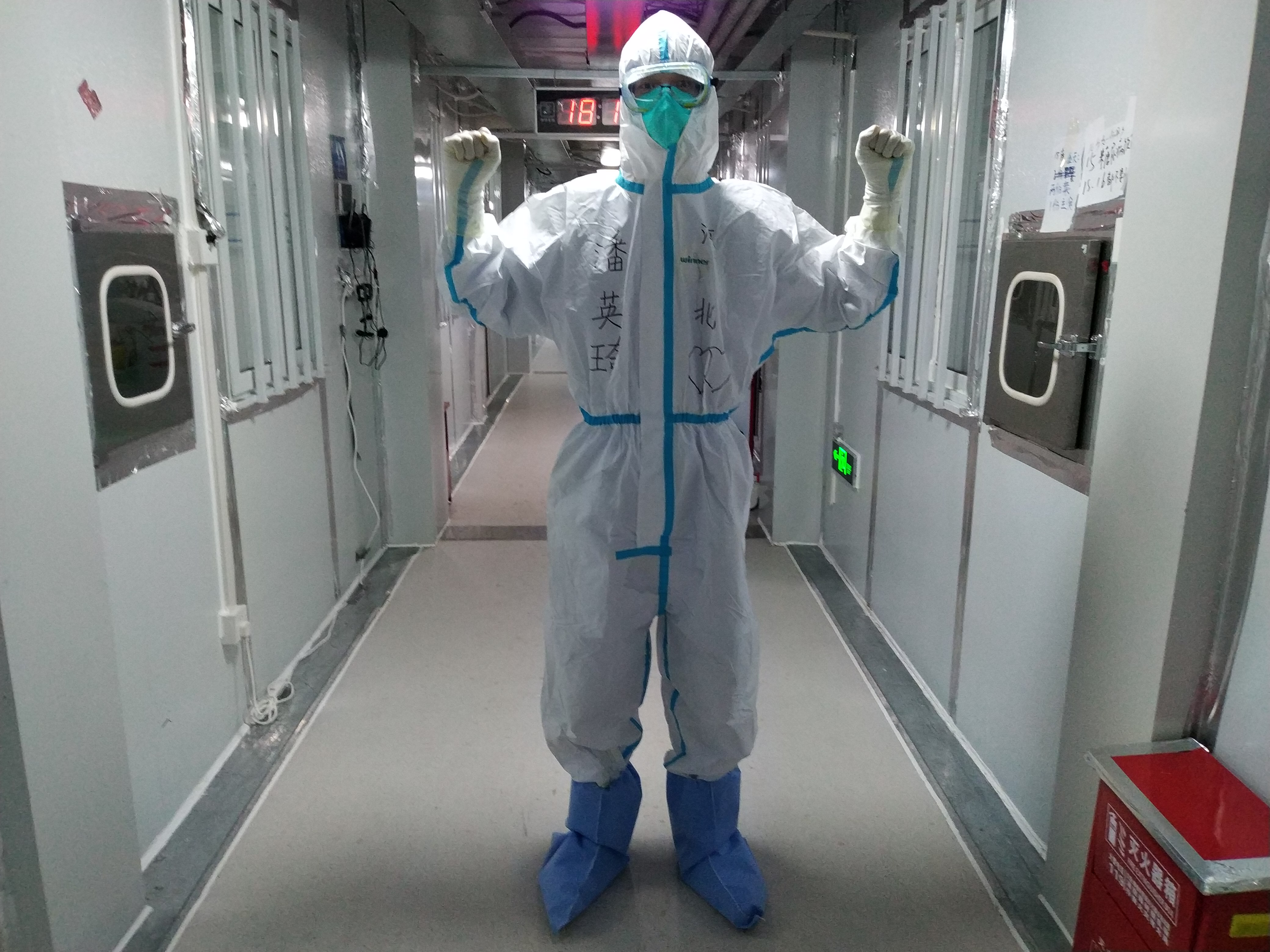 疫情就是命令,3月7日晚,我接到紧急任务,领队打电话说河北支援另一所医院(武汉市七院)的老师生病了,问我能不能替班,我说:“行,没问题”,第二天八点我准时出现在武汉市七院的隔离病房,交班、输液等治疗工作有序进行。病房的患者很热情,主动拍摄了我治疗的瞬间,心里暖暖的。一天穿脱了两次防护服,在隔离病房里呆了七、八个小时,出来浑身都湿透了,不过当大家回来时在班车上唱着打靶归来时,深感一切都是值得的。